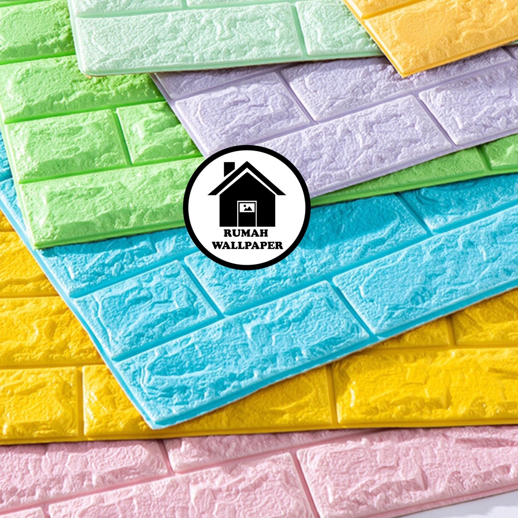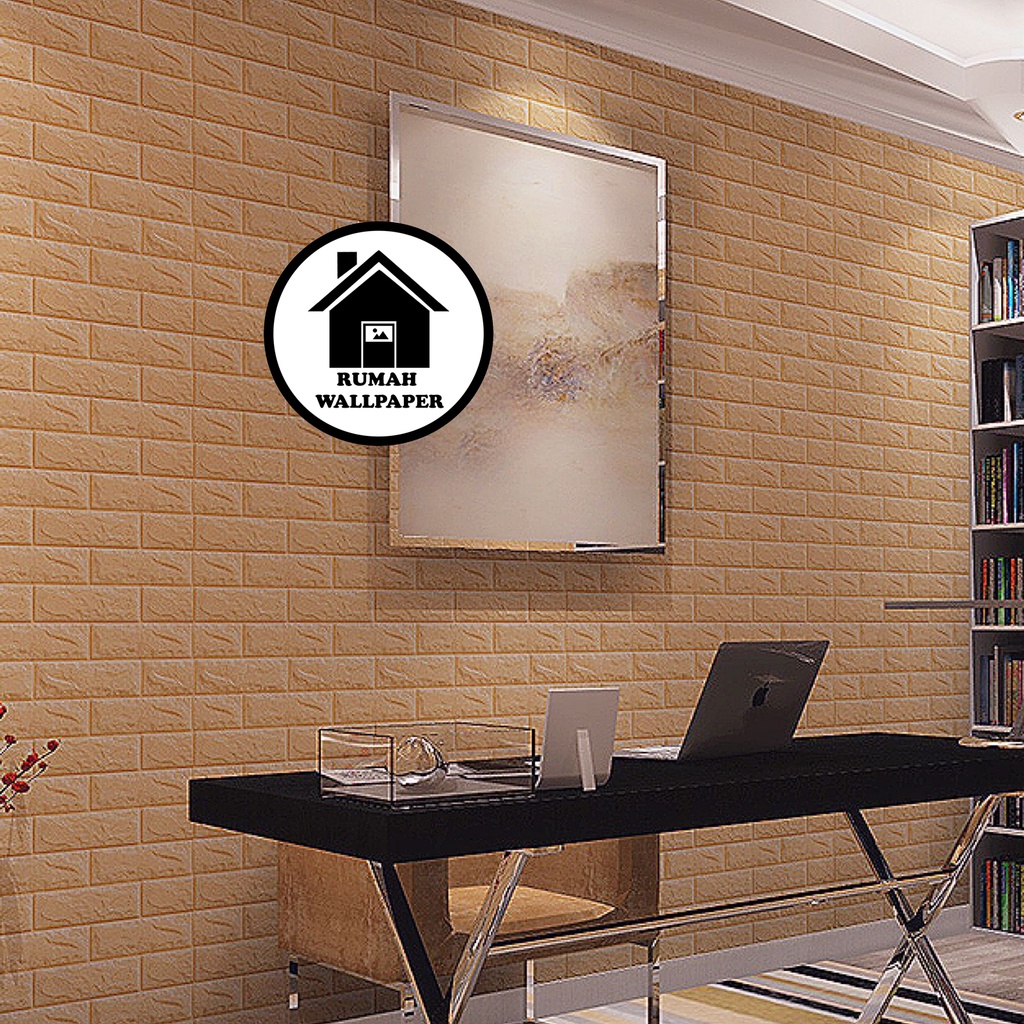 RW Wallpaper Foam Coklat Bata 3D Bata Warna Coklat Premium Wall Paper Sticker Tebal 3MM