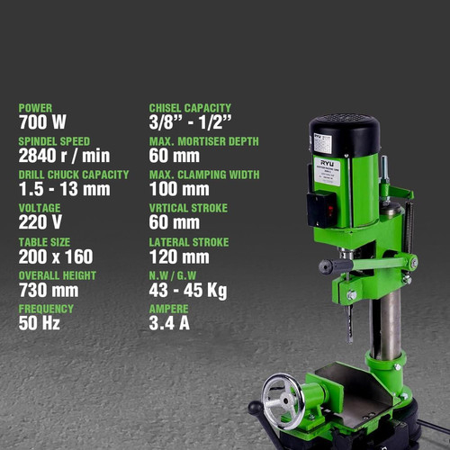 RYU RMM13 Mesin Bor Bobok Kayu 13 mm 13mm / Mesin Mortiser Kayu 13 mm Mesin Bor Duduk Bobok Kayu ORI