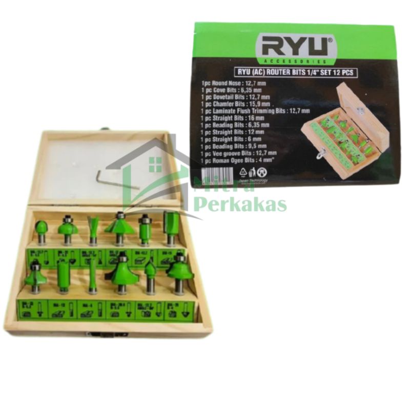 RYU Router Bits 1/4" Set 12pcs / Mata Profil Mata Trimmer Bit Set 12pc
