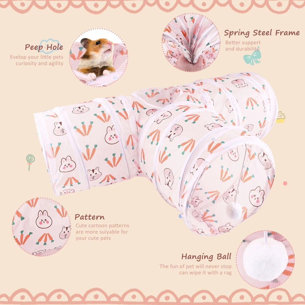 Rabbit Tunnel Rabbit Toys Rabbit Tunnels and Hideout Collapsible 3 Way Tunnel for Rabbits Activity Tunnels Crinkle Tunnel Tube