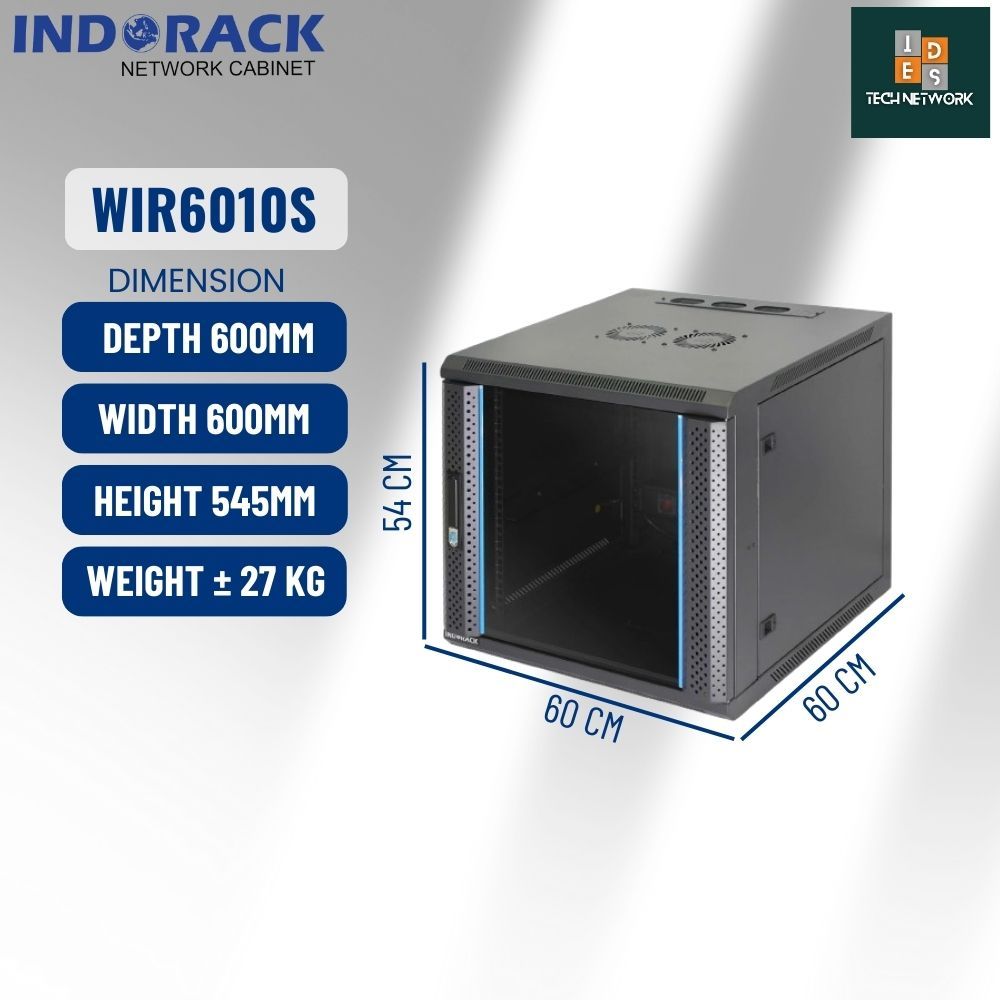 Indorack WIR6010S Wallmount Rack 10U Depth 600mm Single Glass Door Rack Server