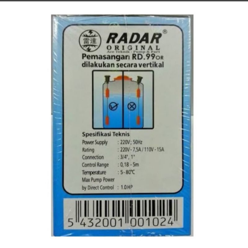 Radar Otomatis Tandon Air / Pelampung Tandon Air / Otomatis Toren Radar RD99