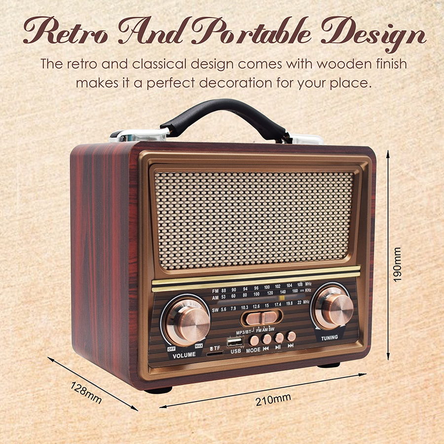 Radio FM/AM/SW Speaker Portable Bluetooth FM Radio Wood Design Radio Bluetooth FM/kartu TF/usb RD-2055BT-BK