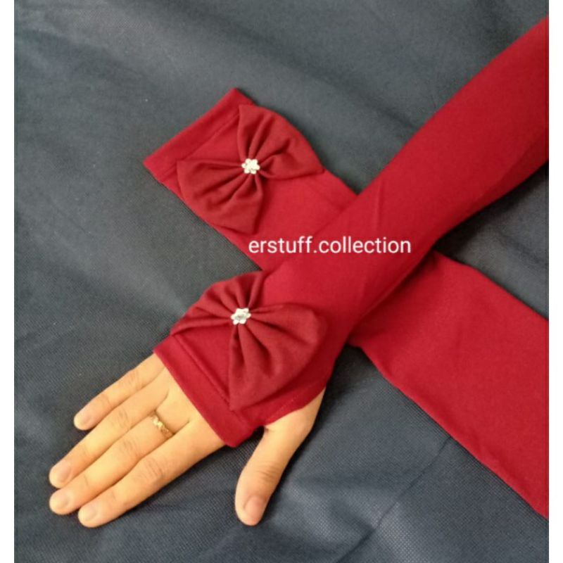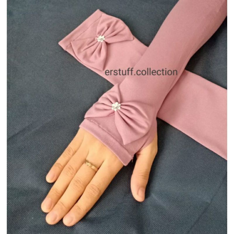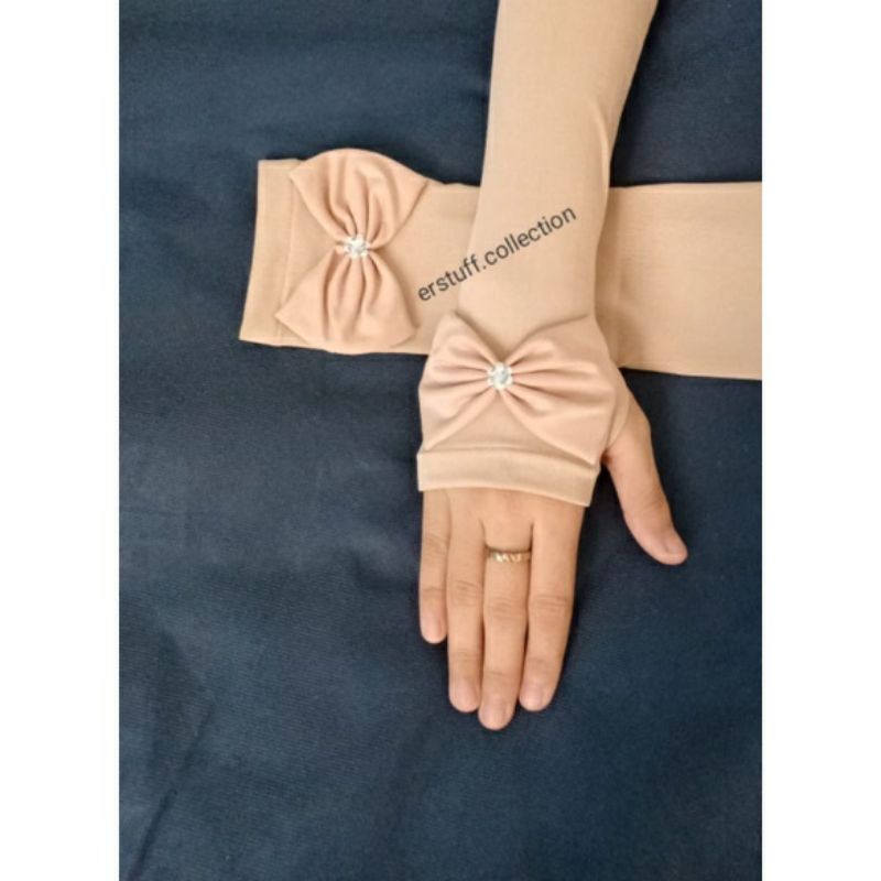 Rafania Handsock Jempol Pita Besar Best Seller Manset Tangan Jempol Pita Bunga Kristal Sarung Tangan Jempol Pita Flower Cristal Fashion Muslimah Umroh Haji