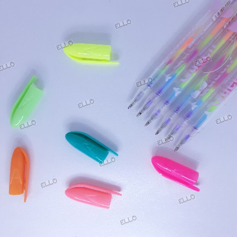 Rainbow Color Gel Pen - Bolpoin / Pena / Pen Warna Pelangi Untuk Alat Tulis Perlengkapan Sekolah / Kantor dan Penanda Buku / Highlighter