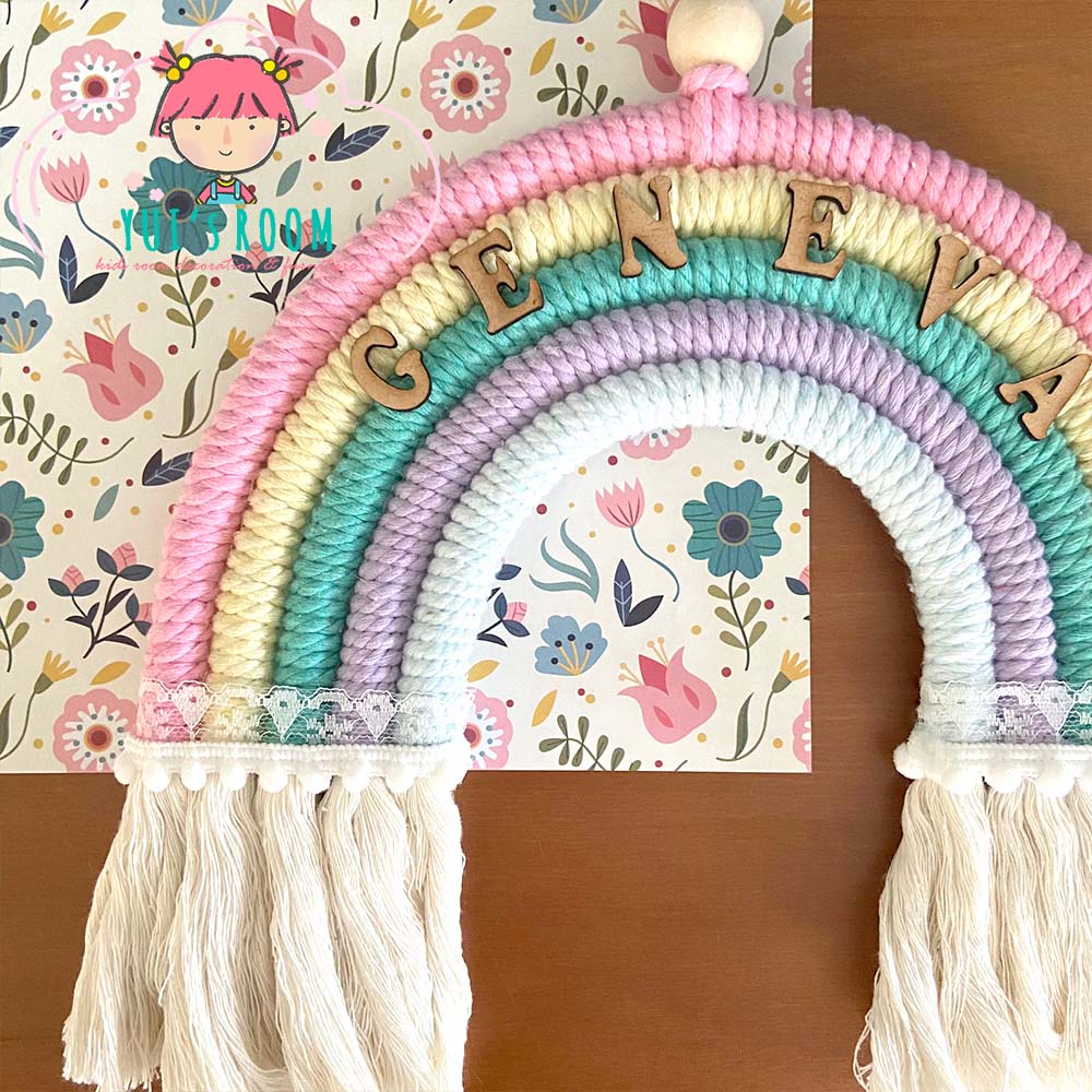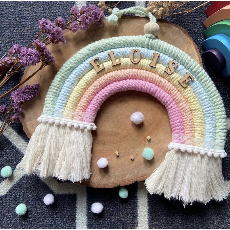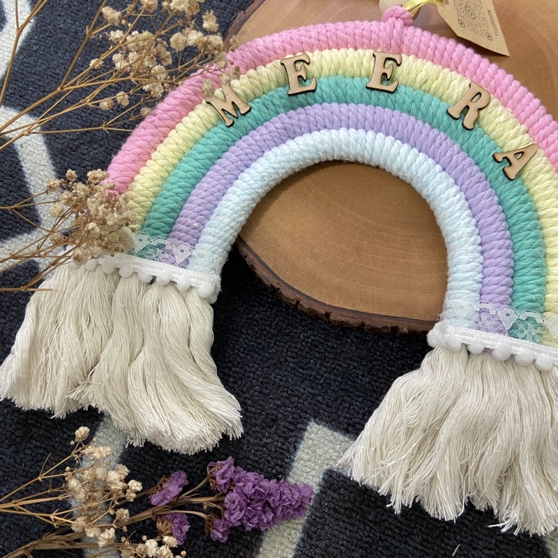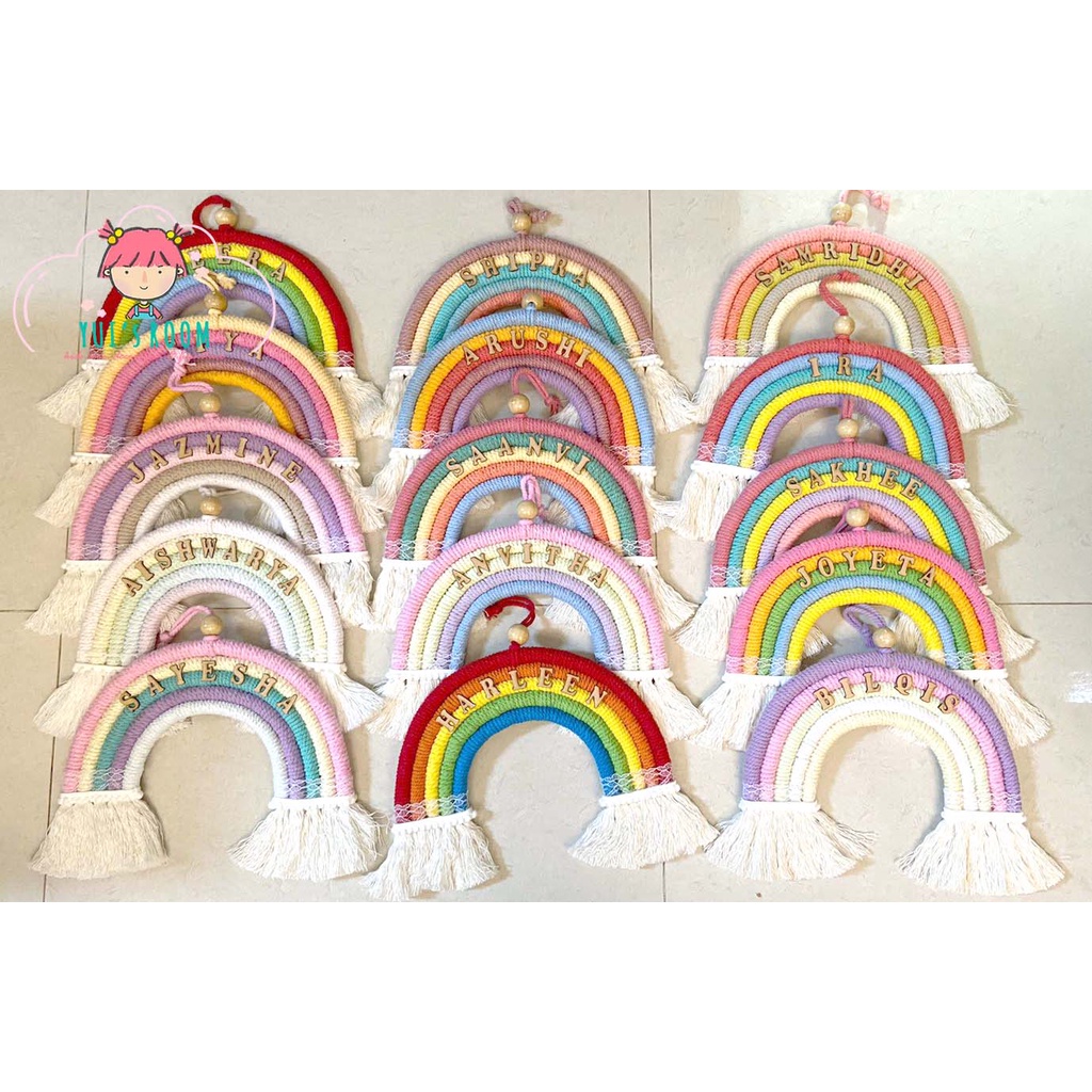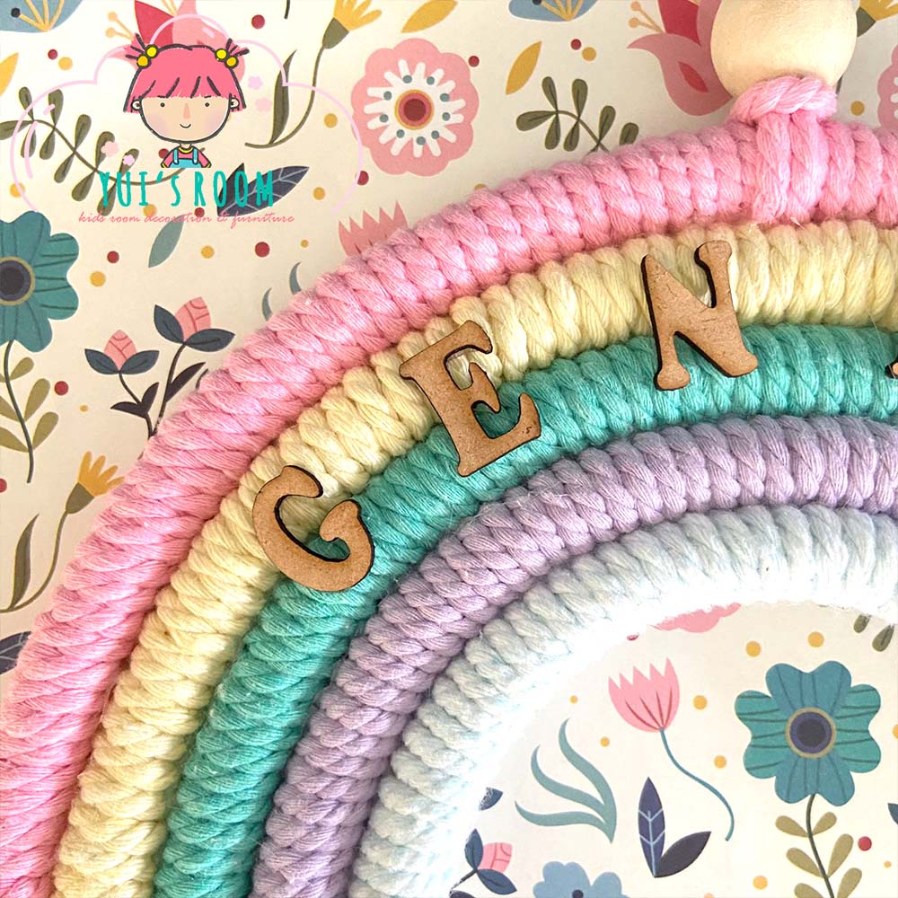 Rainbow Macrame + Nama | Gantungan Pintu Pelangi Custom Nama dan Warna | size 25cm | Dekorasi Kamar