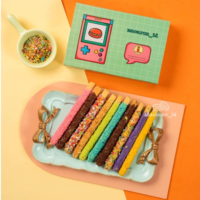 Rainbow Stik Roti Kering Warna-warni Topping Macaron
