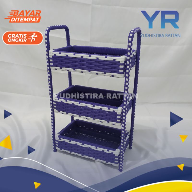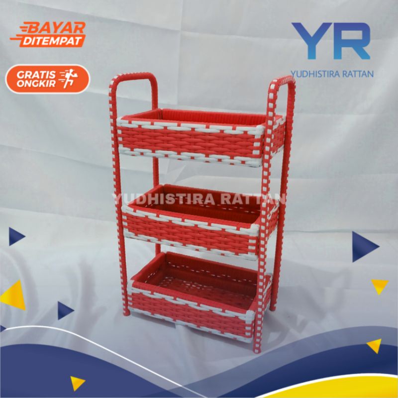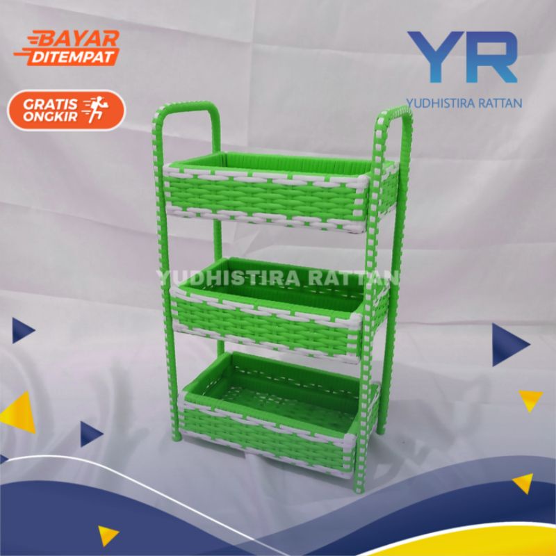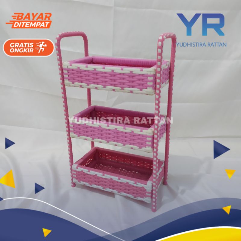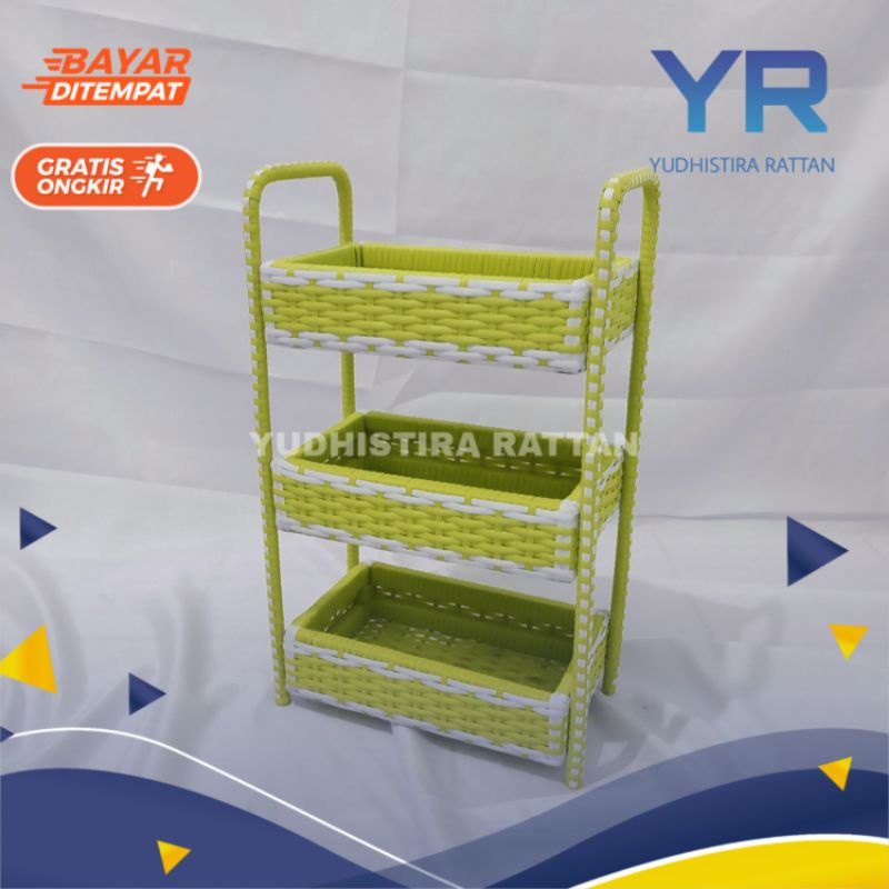 Rak 3 Susun Serbaguna Keranjang Bumbu Dapur Rotan Anyaman Sintetis