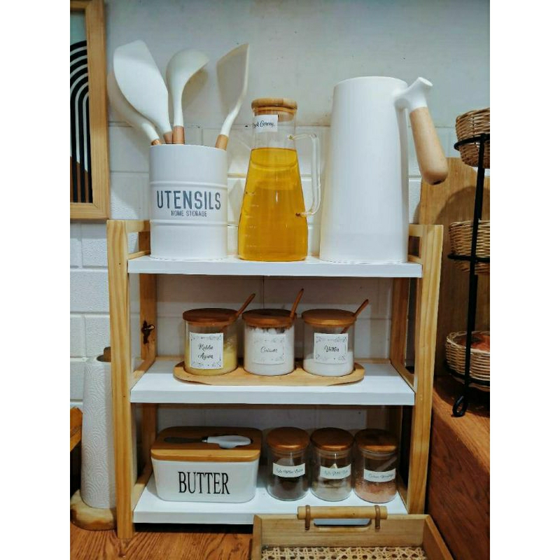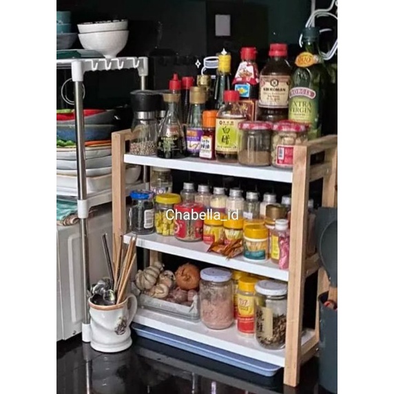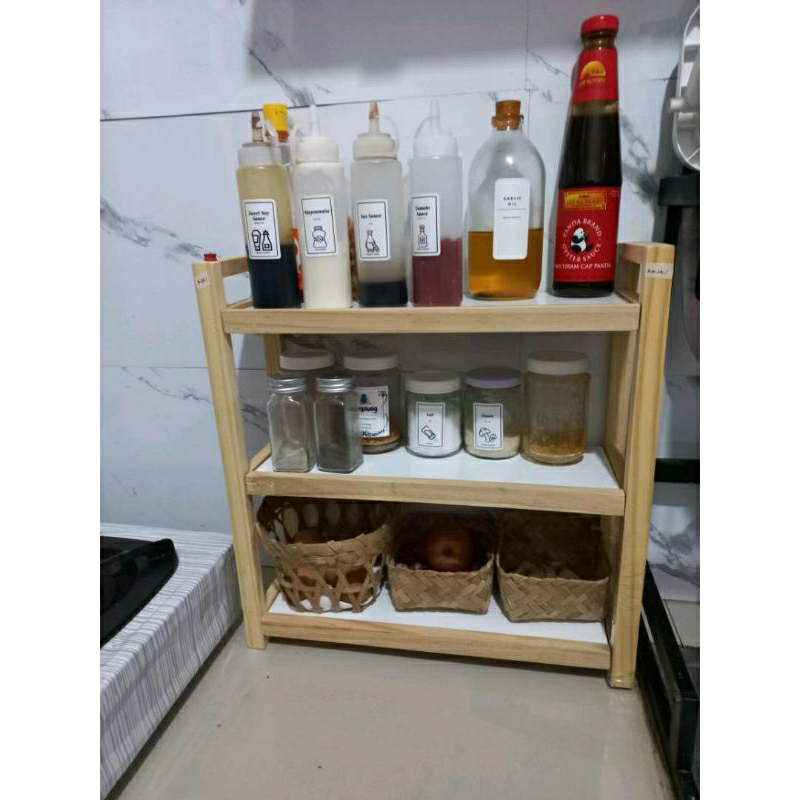 Rak 3 Tingkat Rak Multifungsi Premium Rak Kayu Serbaguna Rak Duduk Bumbu Dapur Rak Buku Estetik