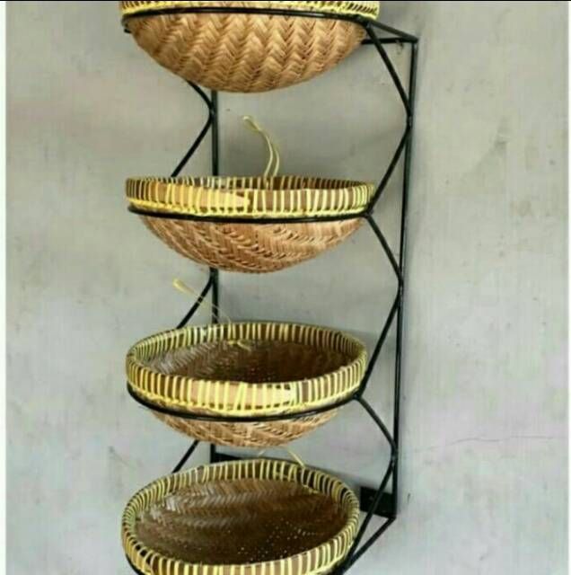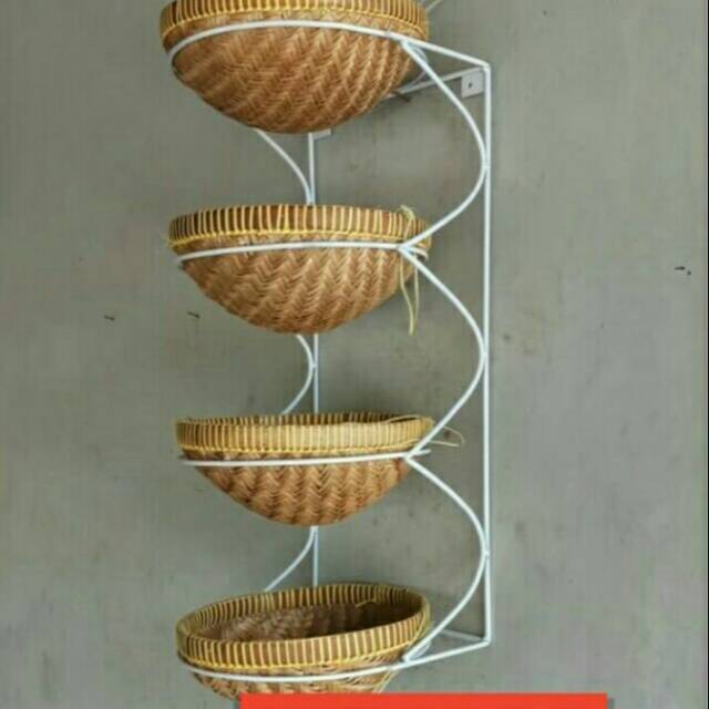Rak Bawang Rak bambu Rak Bumbu 4 susun Tempel