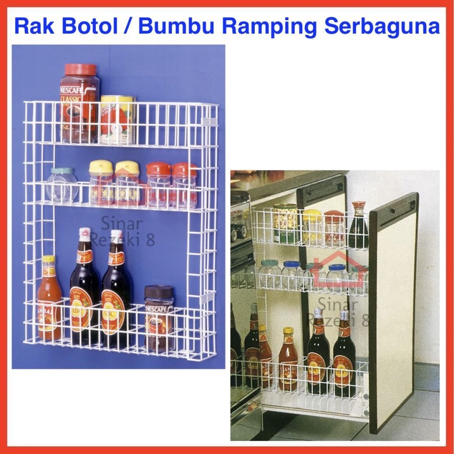 Rak Botol Tarik 3 Susun Modelline B15E / Gantung Dapur Bumbu Saos Gelas Kamar Mandi Serbaguna