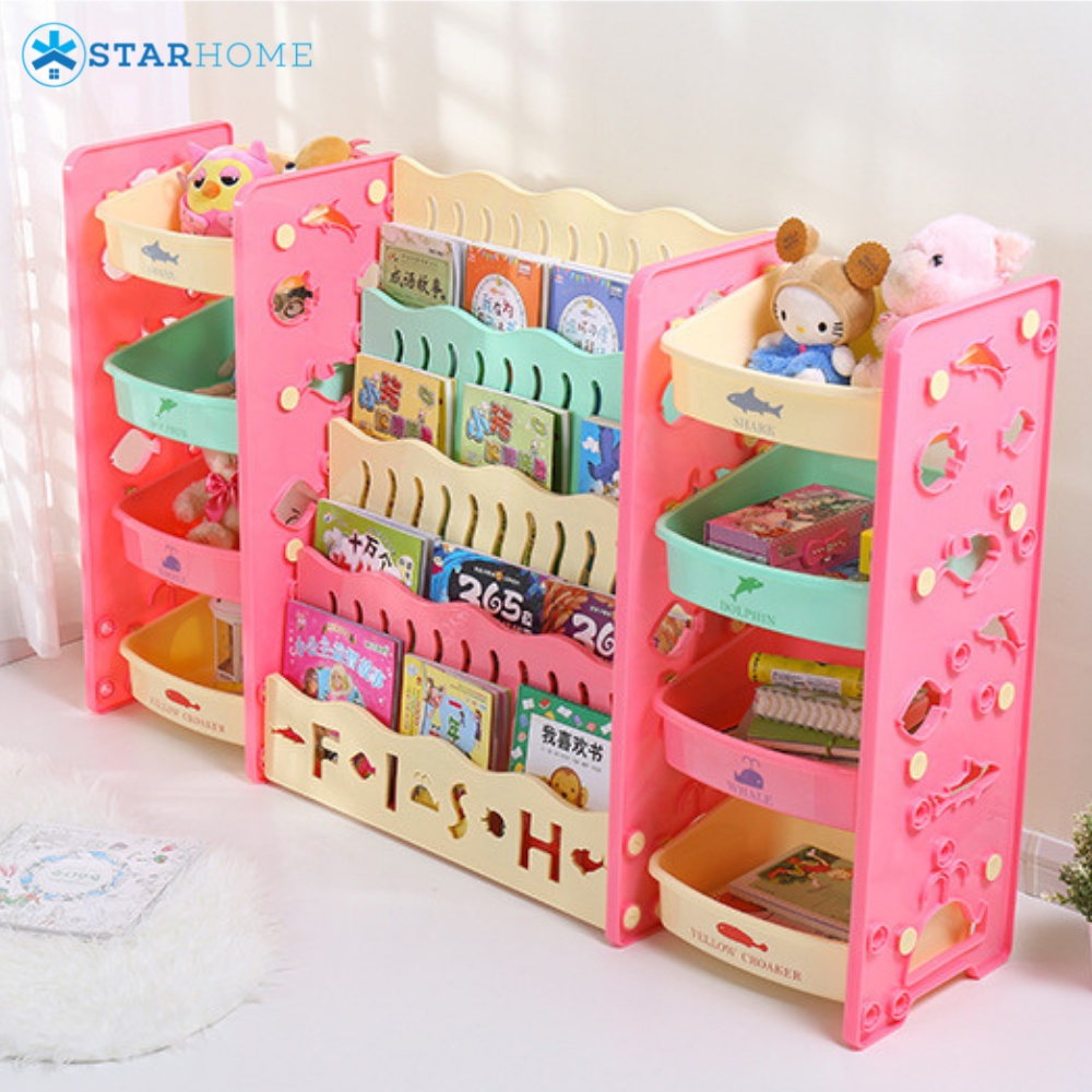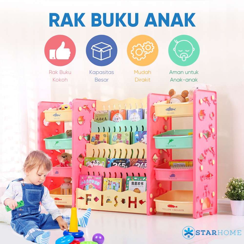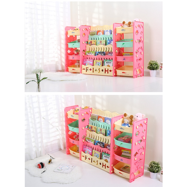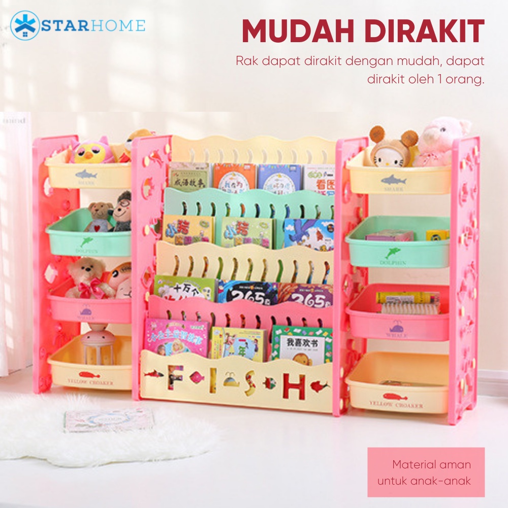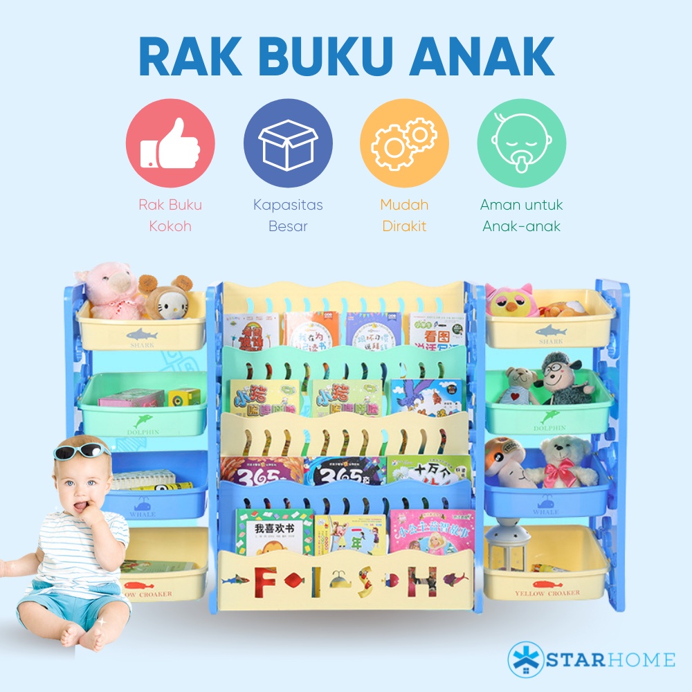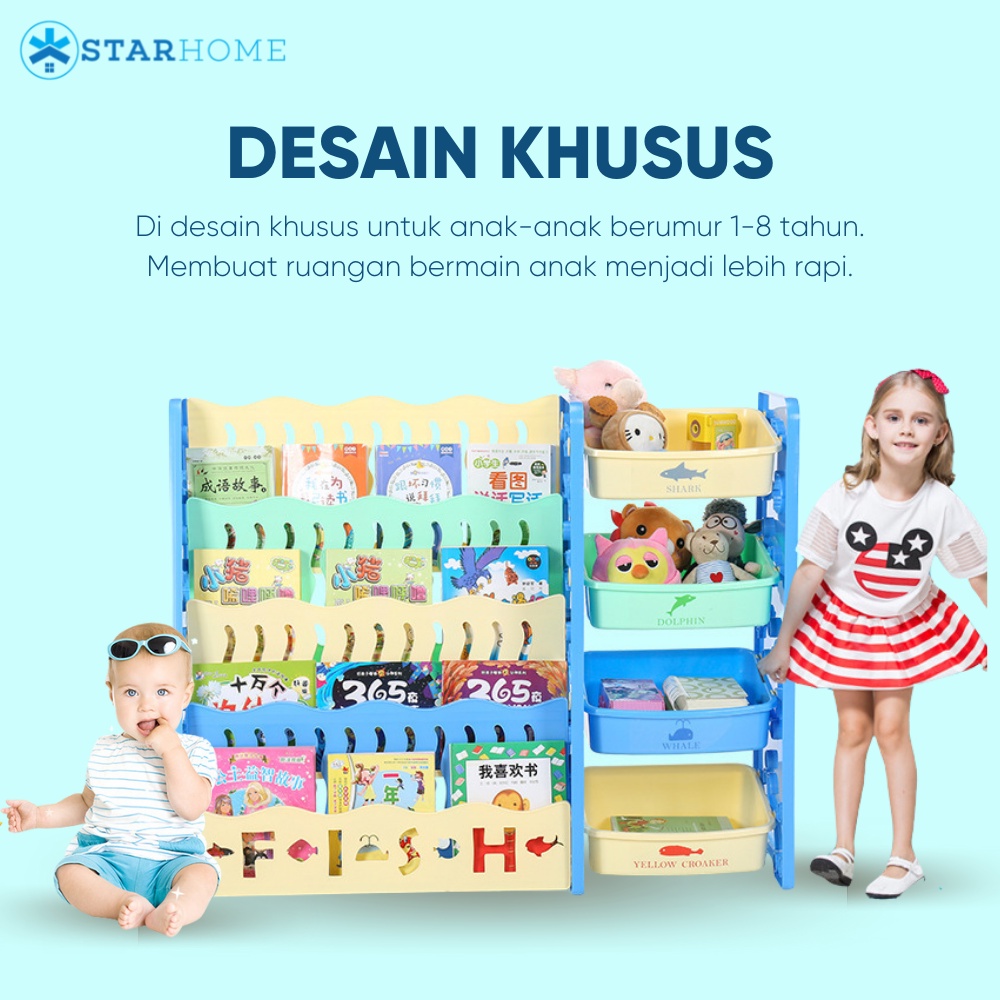 Rak Buku Anak Rak Majalah Tempat Buku Mainan Anak Storage Box Rak Buku 4 Susun dan 8 Kotak Penyimpanan
