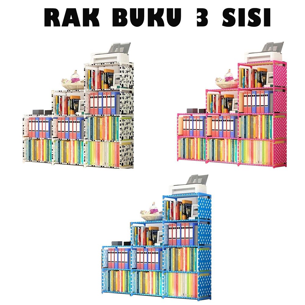 Rak Buku Susun Serbaguna Portable 3 Sisi / Lemari Buku Susun 9 Ruang / Rak Buku Anak