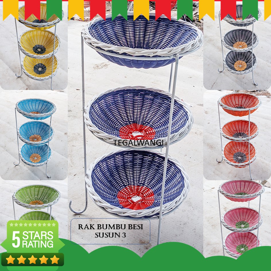 Rak Bumbu Anyaman Rotan Sintetis Rangka Besi