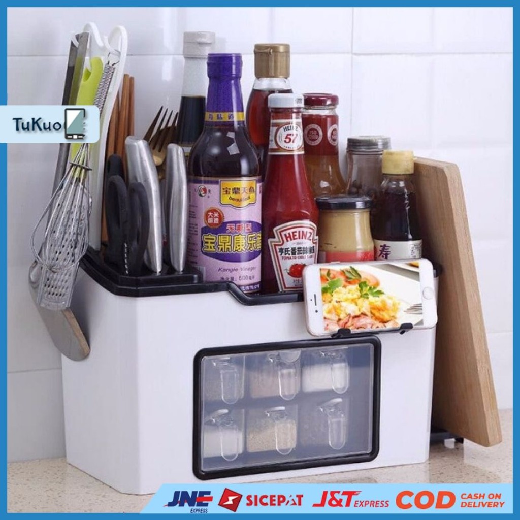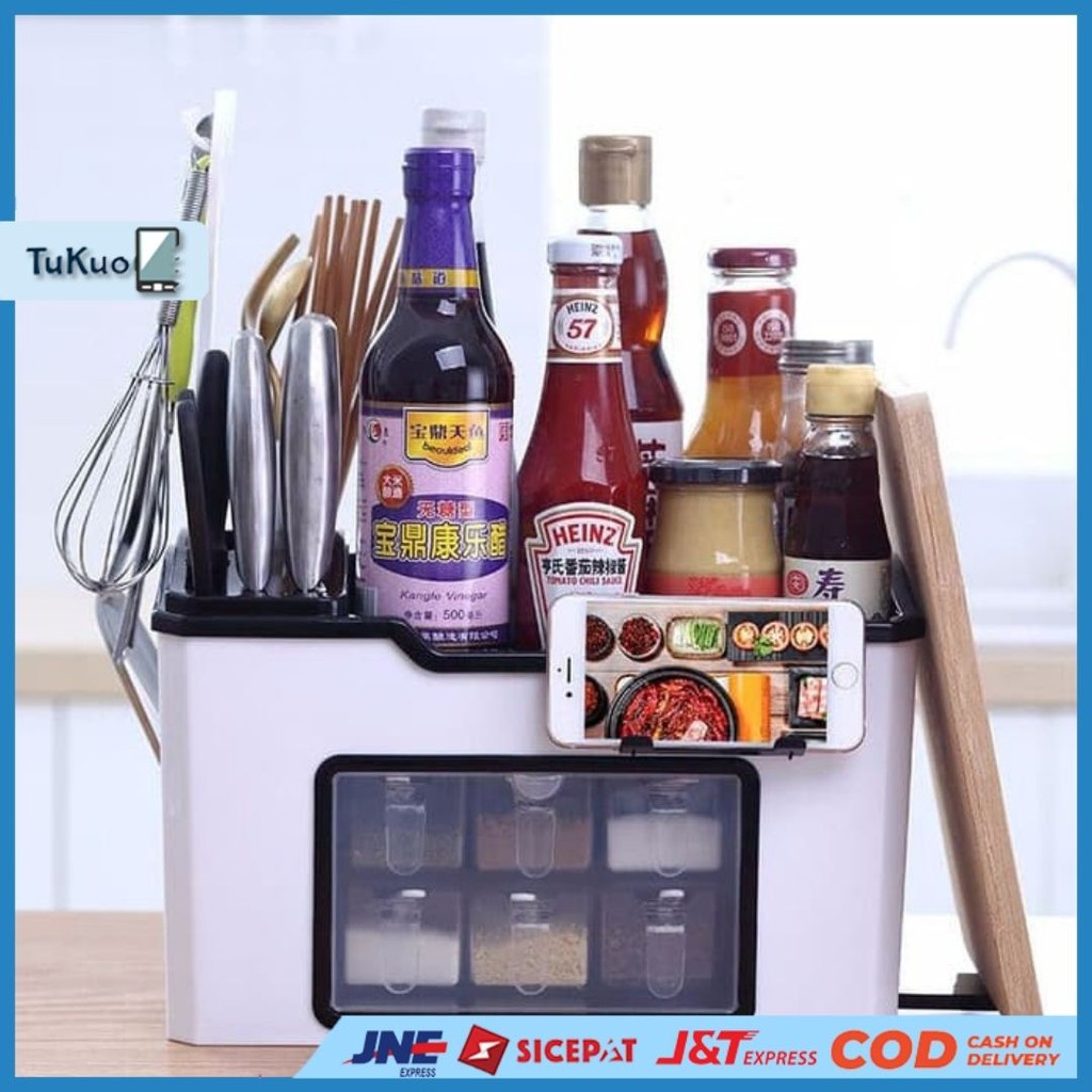 Rak Bumbu Dapur Minimalis Dinding Dengan Gantungan Sendok Sutil Dengan Desain Modern Mudah Dipasang Untuk Maksimalkan Ruang Dengan Penyimpanan 6 Laci