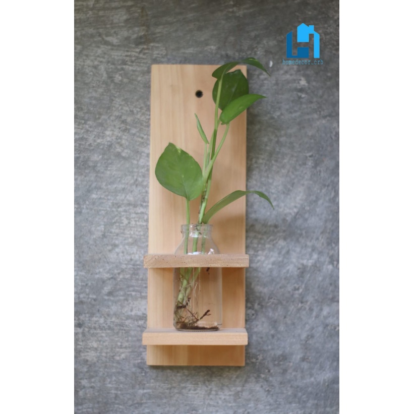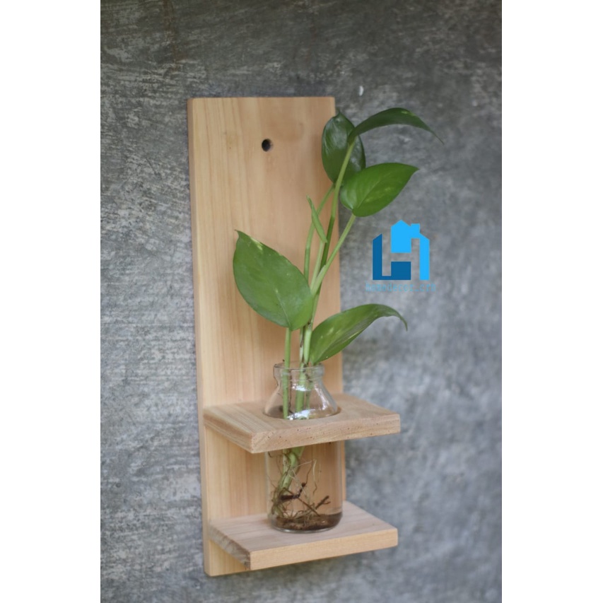 Rak Bunga kayu dinding - Vas bunga kayu
