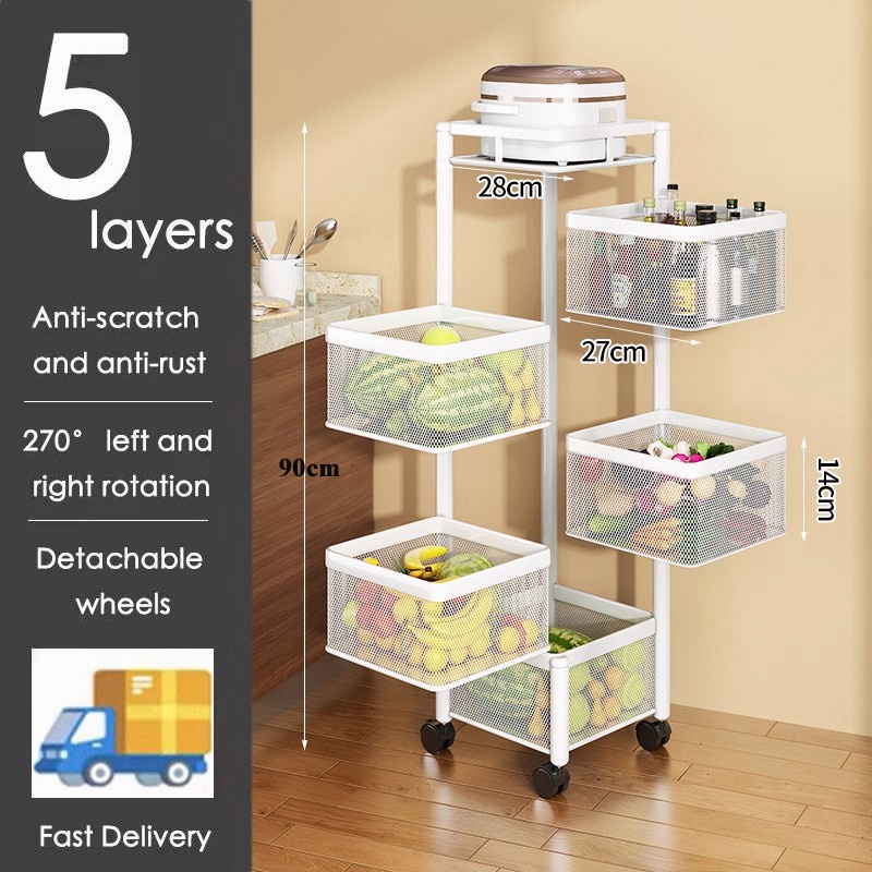 Rak Dapur Berputar Stainless Steel Rak penyimpanan multifungsi Rak Kamar Mandi Rak dapur Rak Ruang Tamu Rak Snack Rak Roda