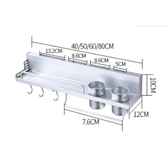 Rak Dapur Dinding Aluminium 60 & 40cm Tempat Bumbu Pisau Spatula Sendok Set alat Serbaguna 60 & 40cm