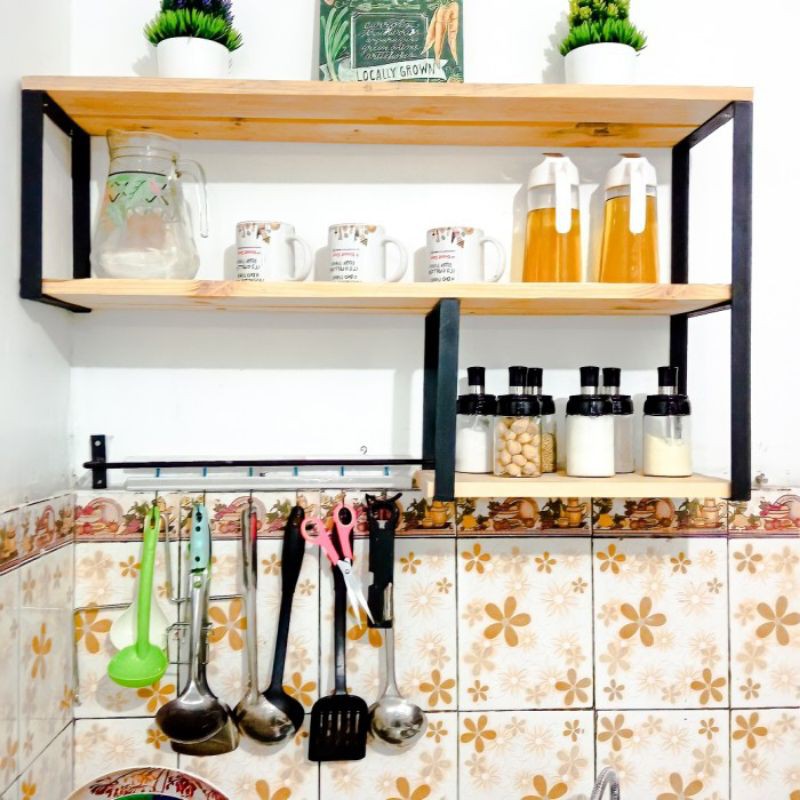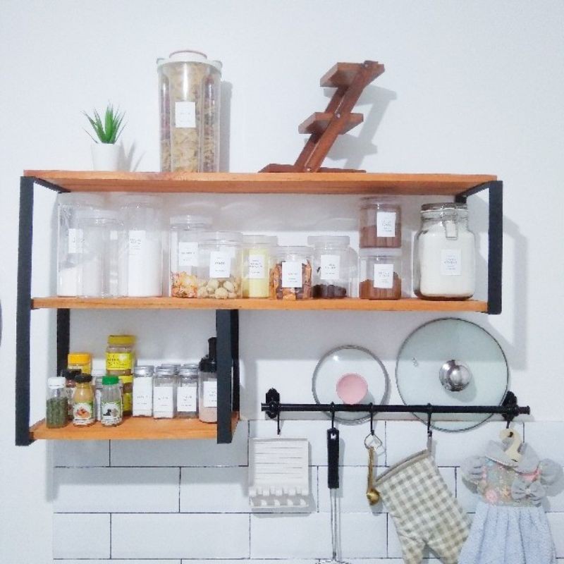 Rak Dapur Rak Bumbu Kitchen Set Rak Hiasan Dinding Rak Tempel Tembok Rak Serbaguna FREE KACA/TAS