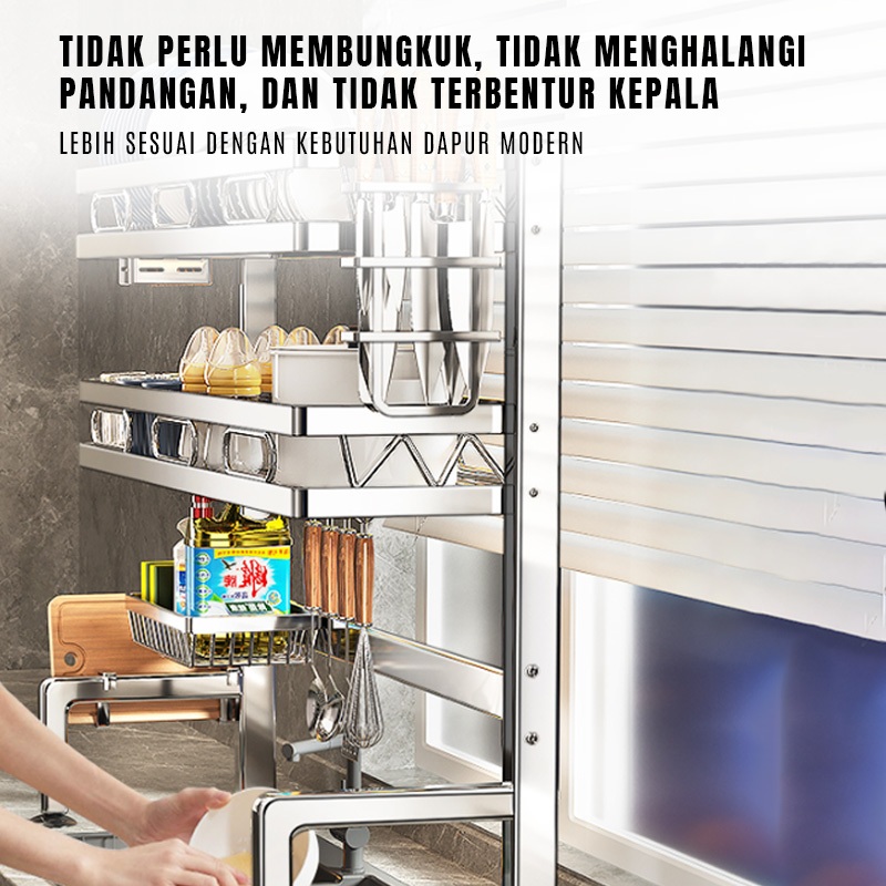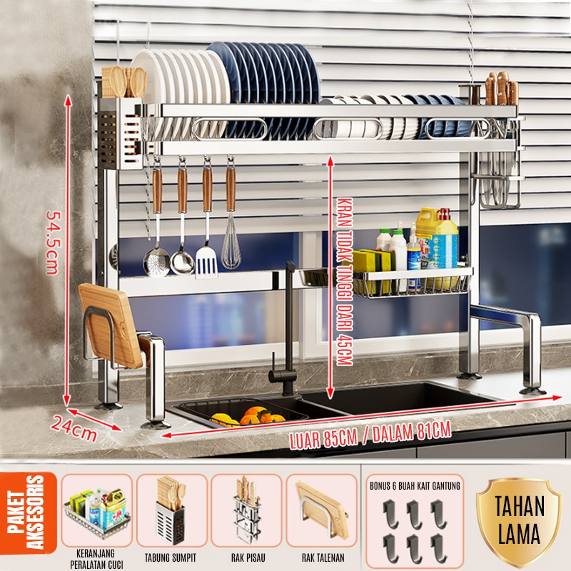 Rak Dapur di Atas Wastafel dari Stainless Steel 304 – Rak Tirisan Multifungsi untuk Mangkuk & Piring