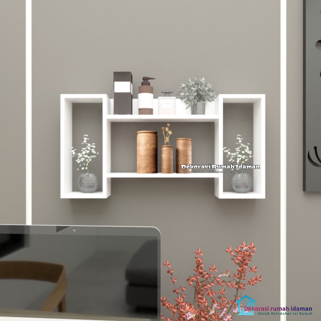 Rak Dinding Minimalis Bahan Kayu Ambalan Susun Gantung Tempel Kamar Buku Kosmetik Serbaguna