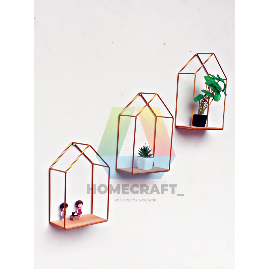 Rak Dinding BENTUK RUMAH 3 Dimensi 1 set (3pcs) besar kecil sedang - Rak besi rumah