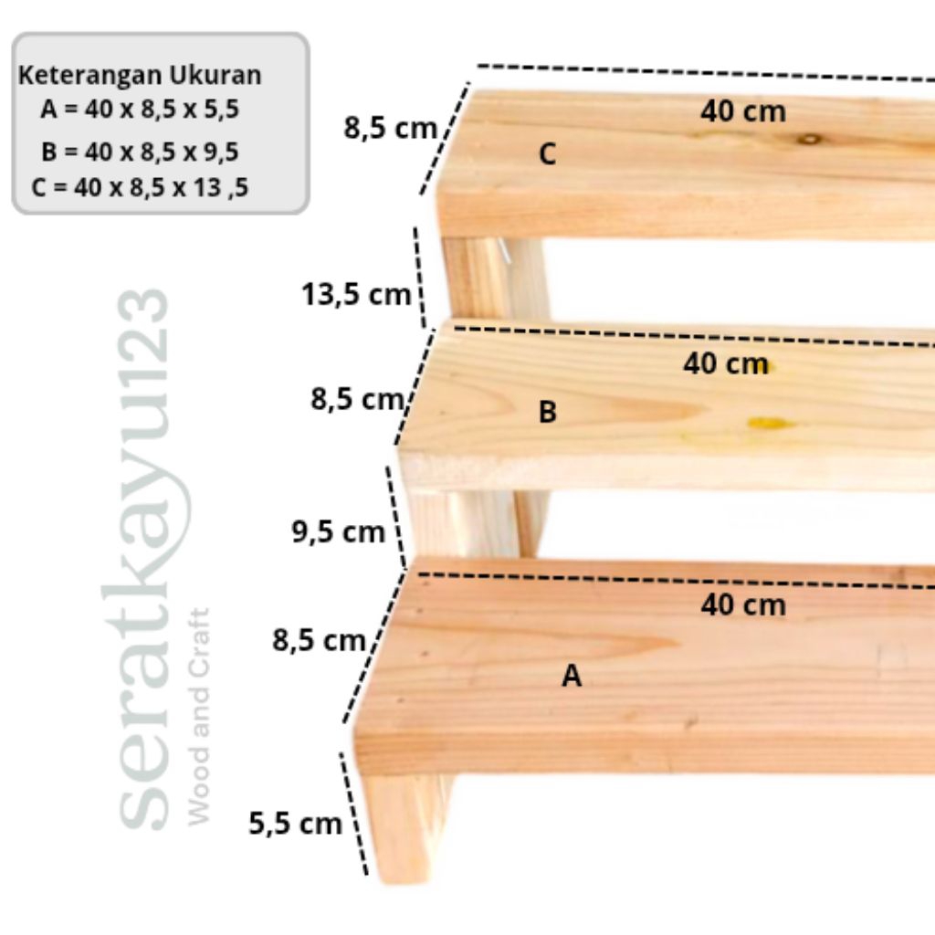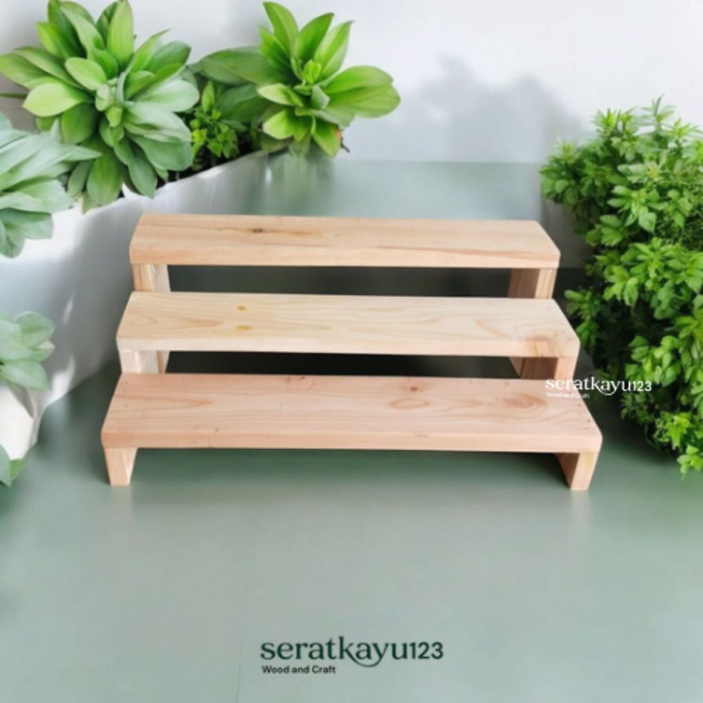 Rak Display Kayu 40 cm / Pajang Produk Rak Tangga Kayu Pajangan / Tempat Bumbu / Rak Serbaguna