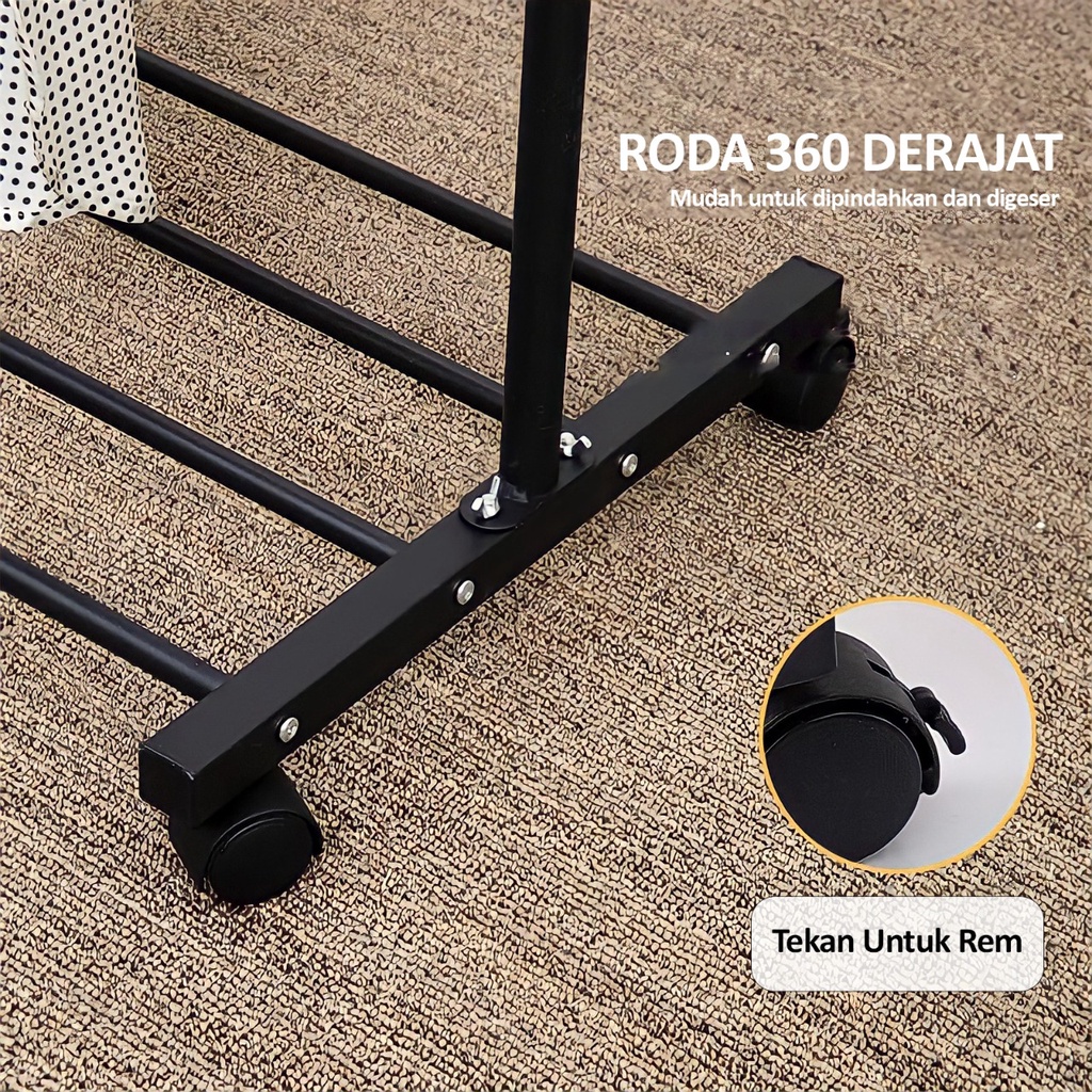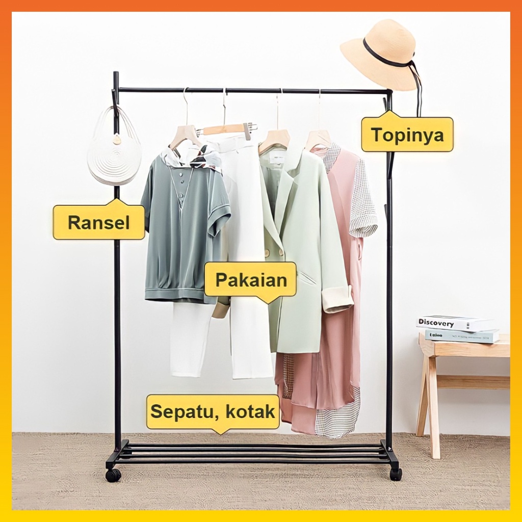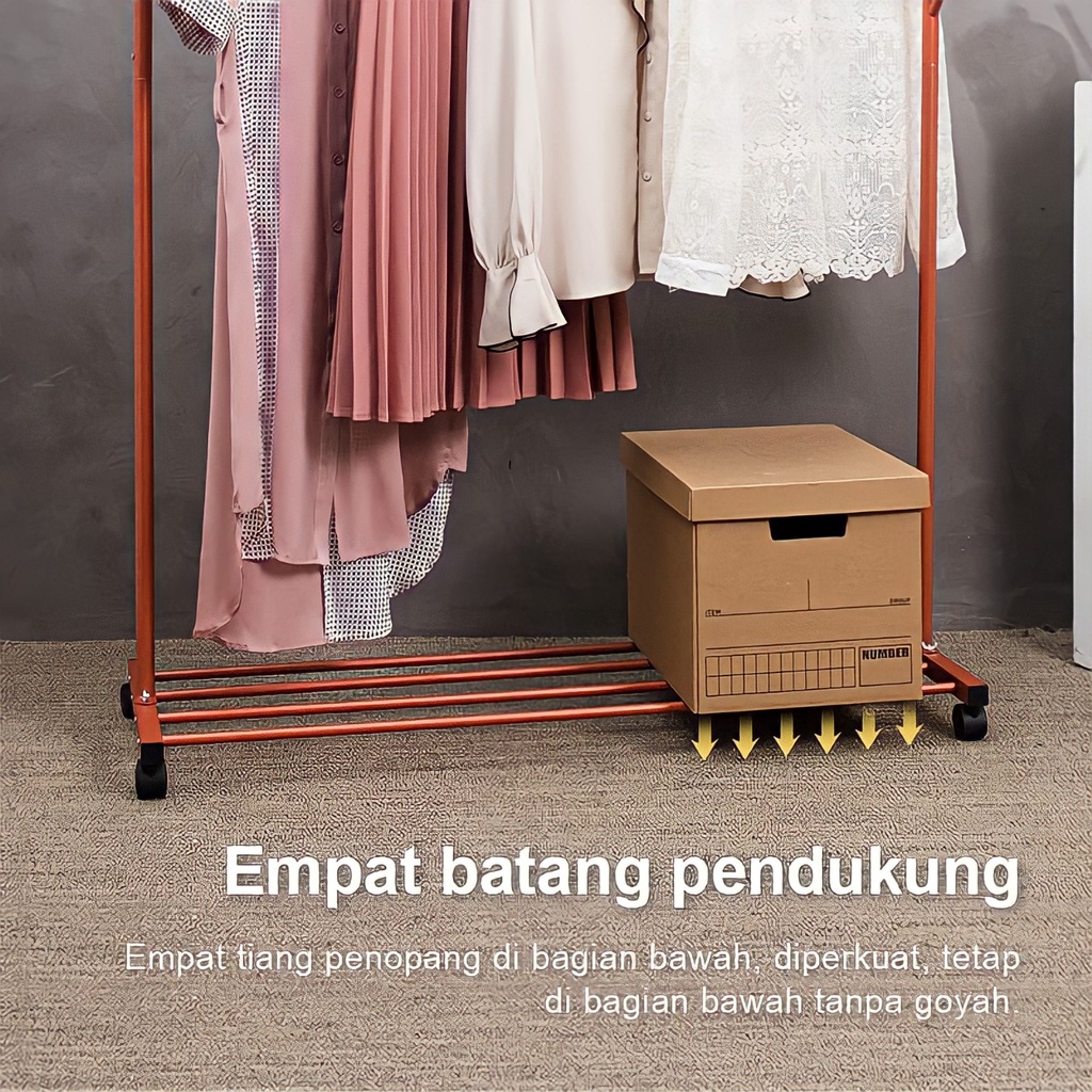 Rak Gantungan Baju Stand Hanger Single beroda Gantungan Baju Stainles Stand hanger Aestetik kuat hingga 30kg WHFURNITURE