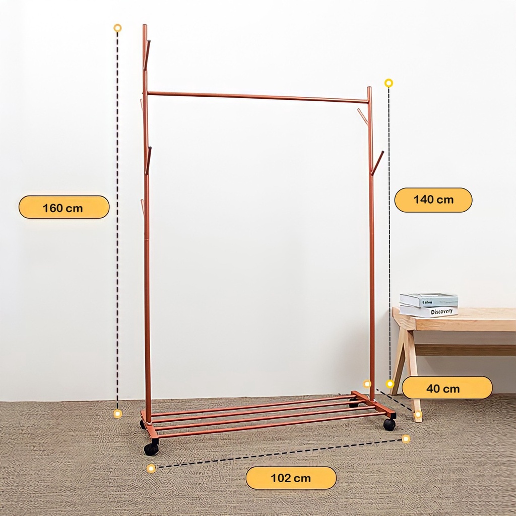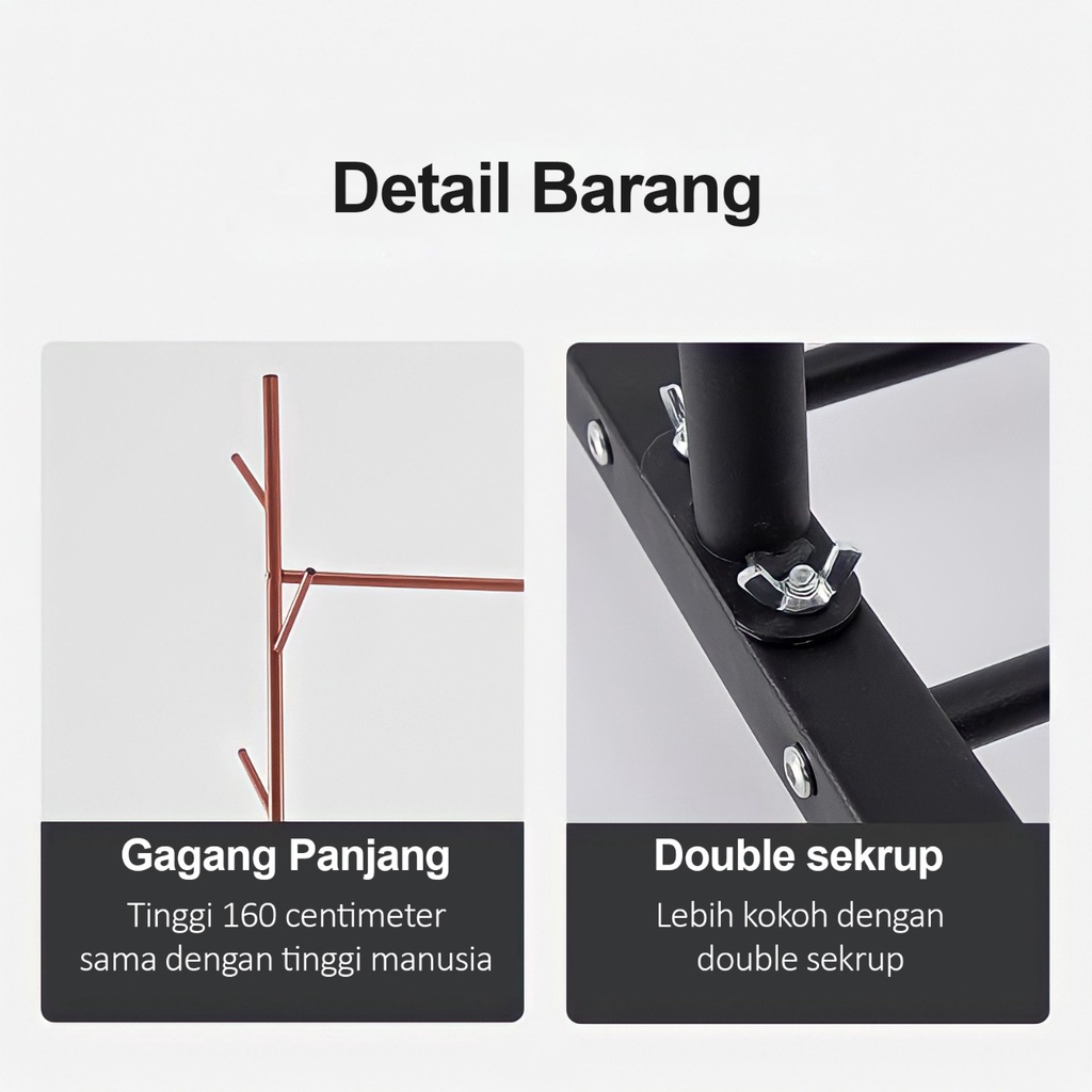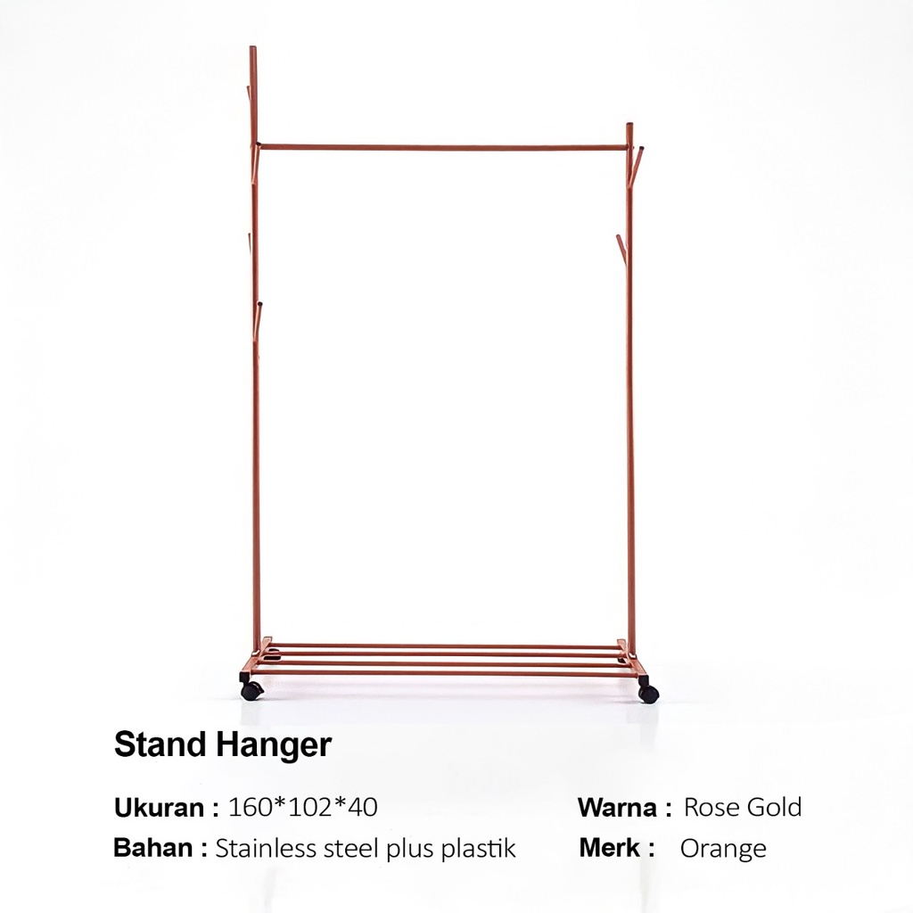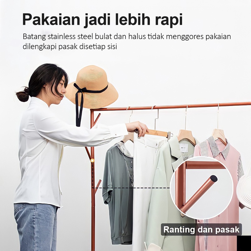 Rak Gantungan Baju Stand Hanger Single beroda Gantungan Baju Stainles Stand hanger Aestetik kuat hingga 30kg WHFURNITURE