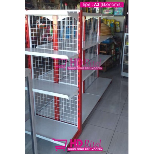 Rak Gondola /Rak swalayan/Rak besi/A3 leg 30 atas 25 Rak Minimarket