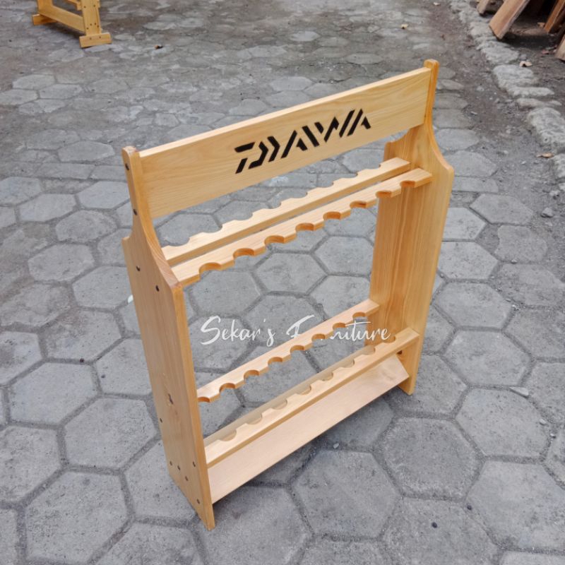 Rak Joran Pancing/ Rod holder/ Rak joran kayu 16 lubang BISA CUSTOM NAMA