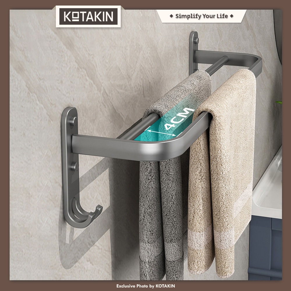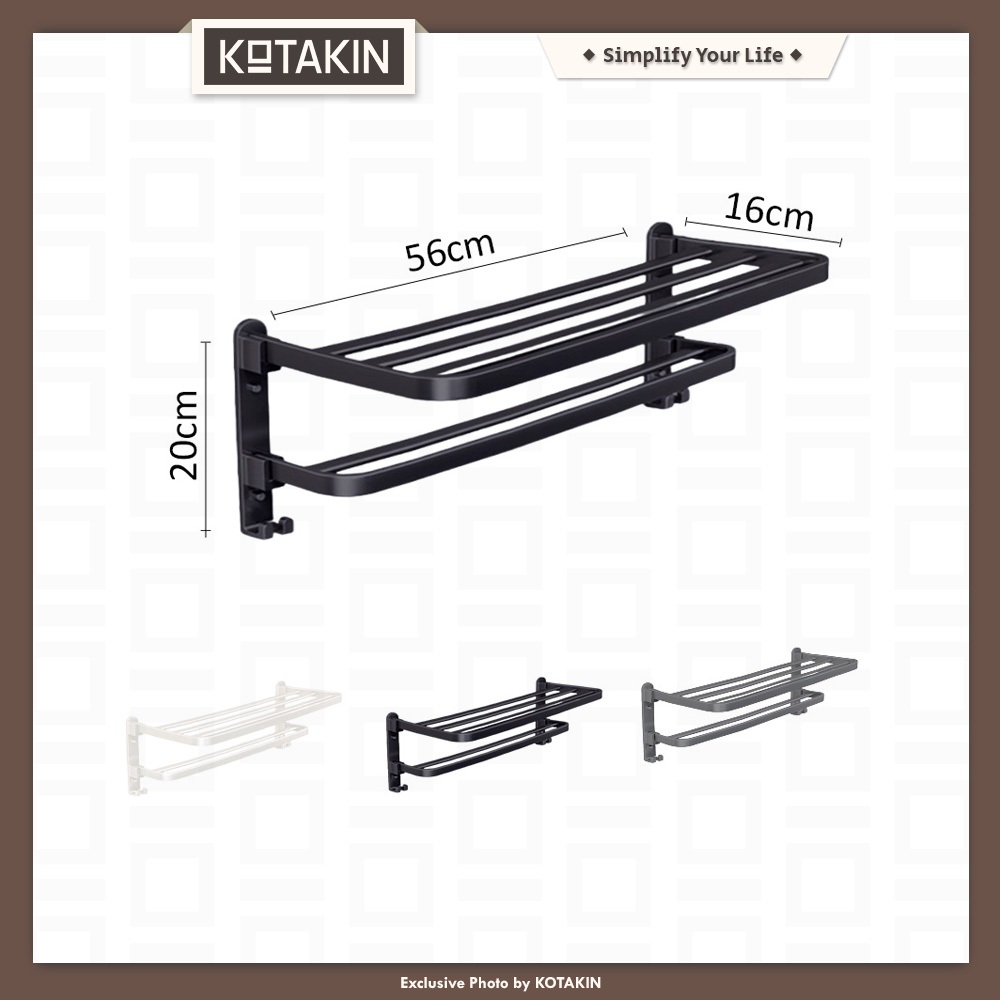 KOTAKIN Rak Kamar Mandi Stainless Steel Gantungan Dinding Handuk 90° Lipat Bahan Tebal Premium