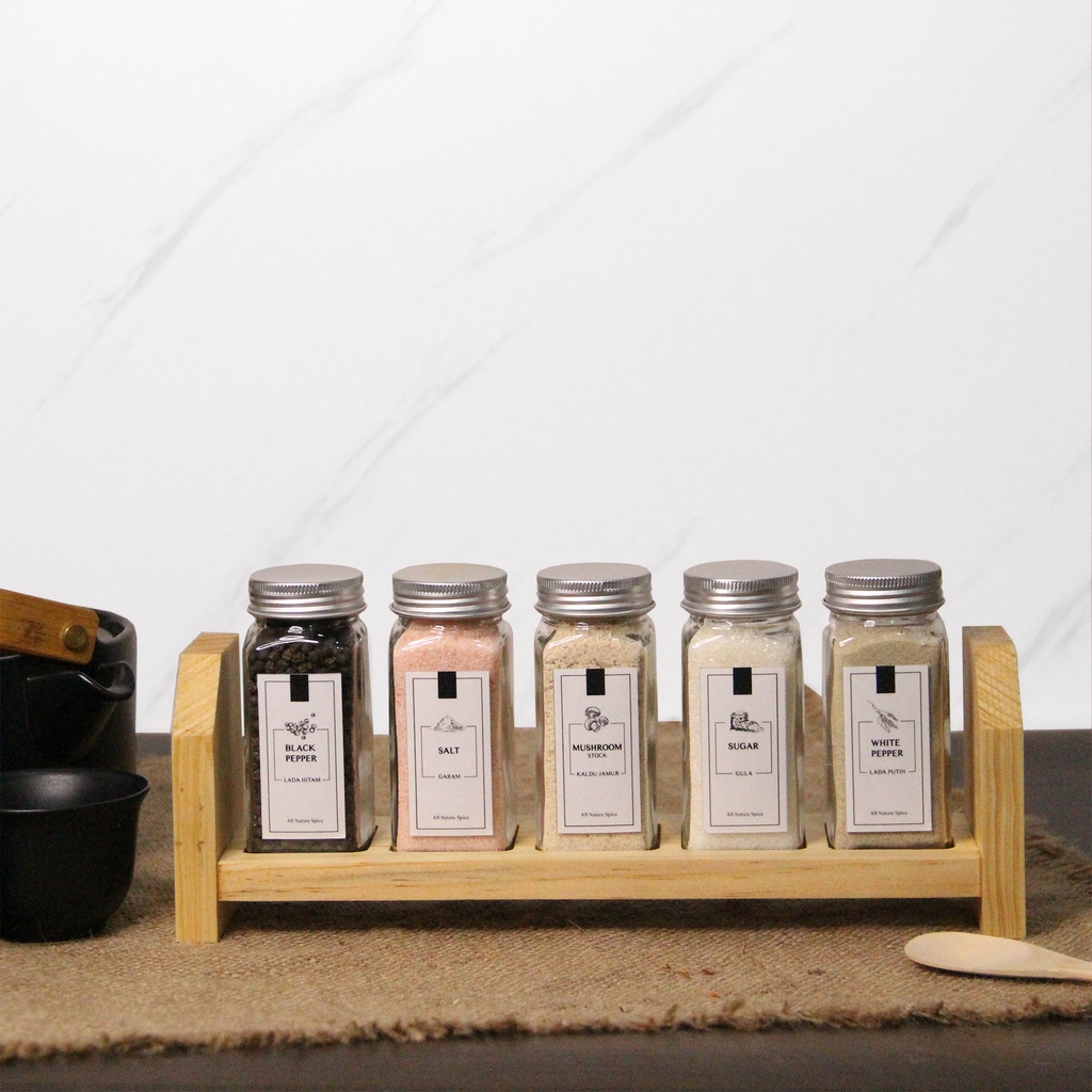 Rak Kayu Botol Bumbu Set 1 Tingkat/ Rak Dapur/ Rak Bumbu Dapur/ Rak Kayu/ Rak Spice Jar - RB01