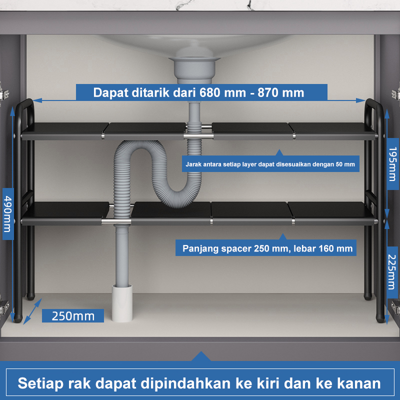 Rak Kolong Dapur Rak Panci Rak Panci Bawah Wastafel Rak Bawah Wastafel rak bawah dapur kolong Rak Dapur Stainless Steel