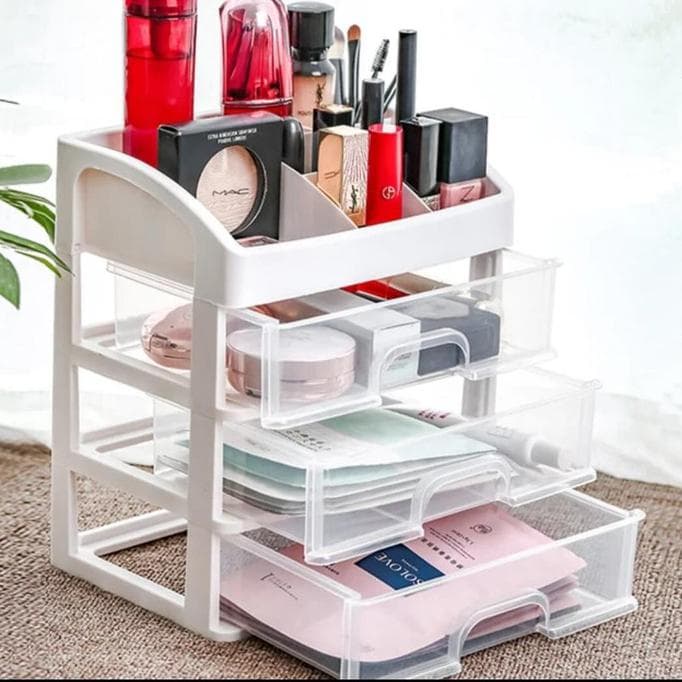 Rak Kosmetik 3 Laci Make Up Susun Serbaguna Tempat Alat Tulis Kantor ATK Kotak Penyimpanan MakeUp Organizer