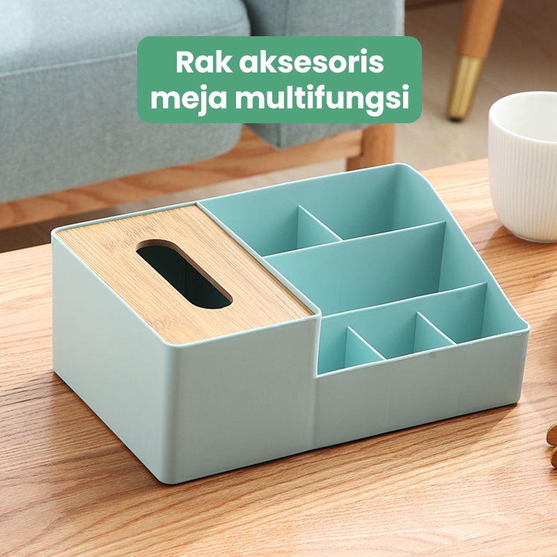 Rak Meja Multifungsi Rak Penyimpanan Dilengkapi Kotak Tisu Rak Aksesoris Minimalis HSB131