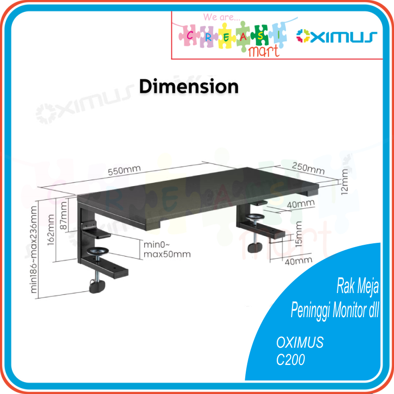 Rak Meja Peninggi Monitor / Organizer Meja Jepit Desktop Riser Oximus C200 100% Original