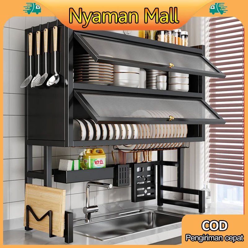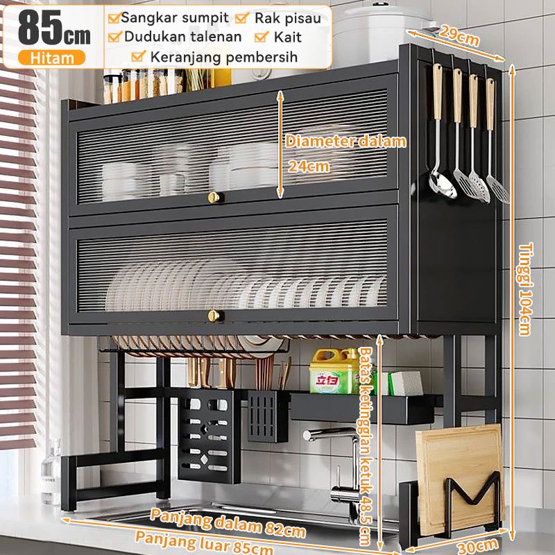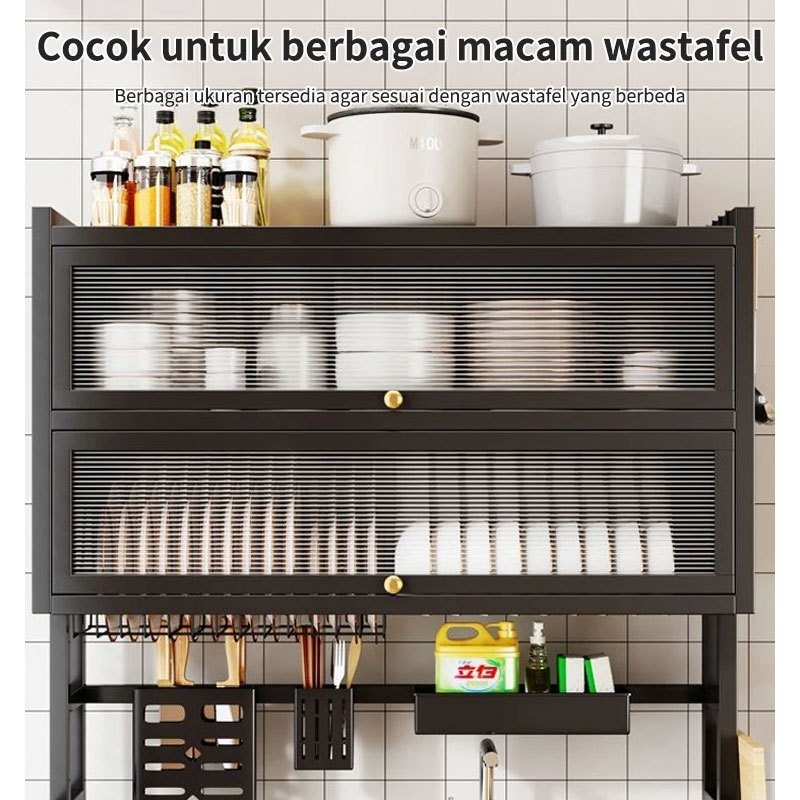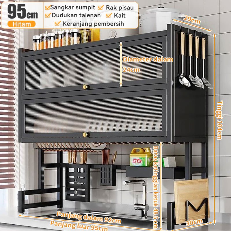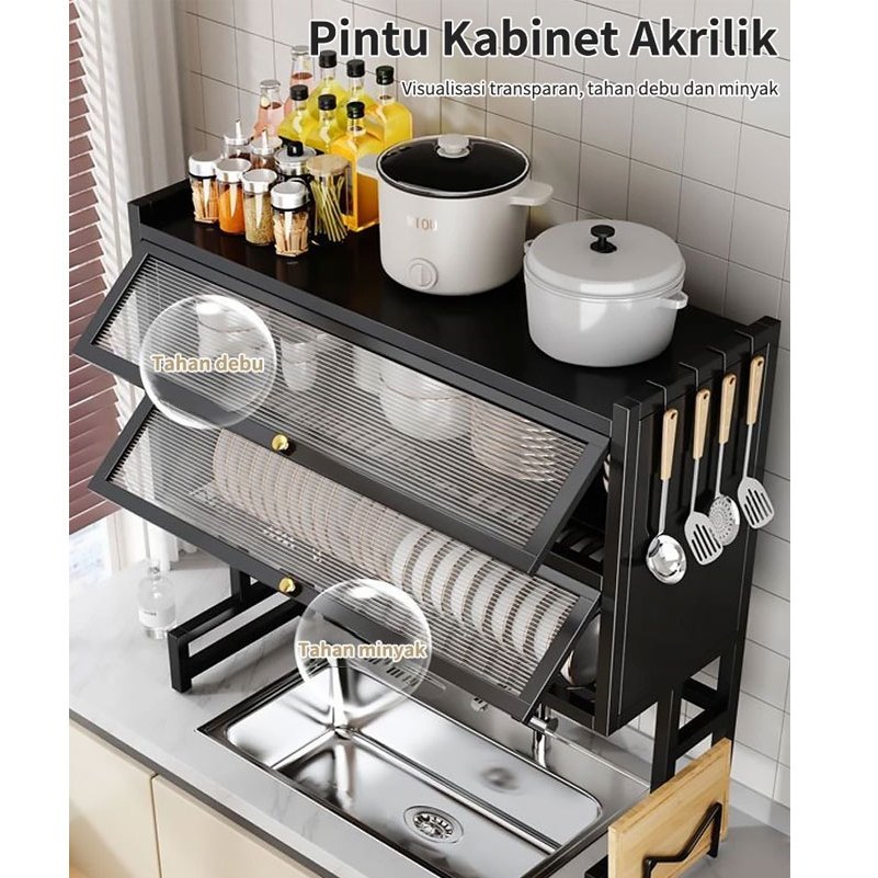 Rak Mesin Rak Wastafel Dapur Dengan Pintu Rak Cuci Piring Multi-fungsi Rak Penyimpanan Multi-layer