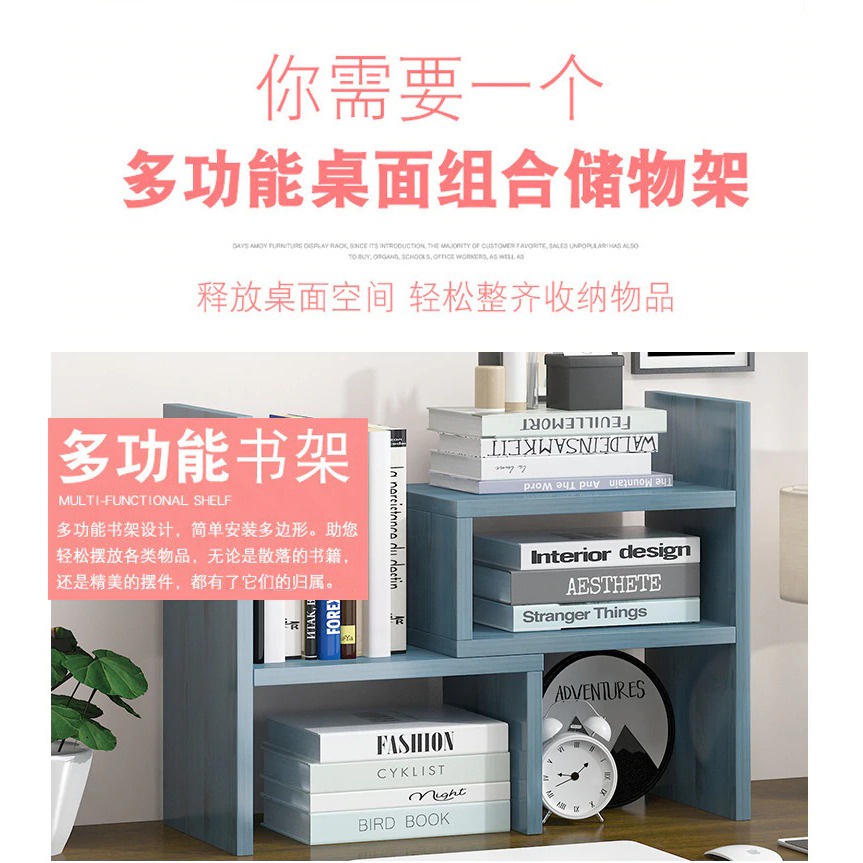 Rak Organizer Penata Meja Buku Bookshelf kayu Modern Perapi Organizer Meja Belajar