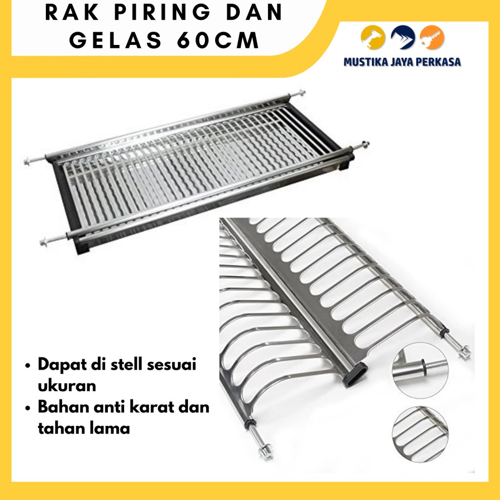 Rak Piring Dapur Atas 60 cm Gantung Tempat Piring Kabinet Kitchen Set Stainless Steel Stainlis Gelas