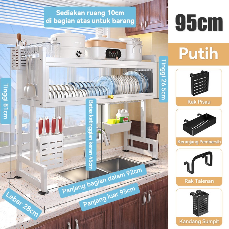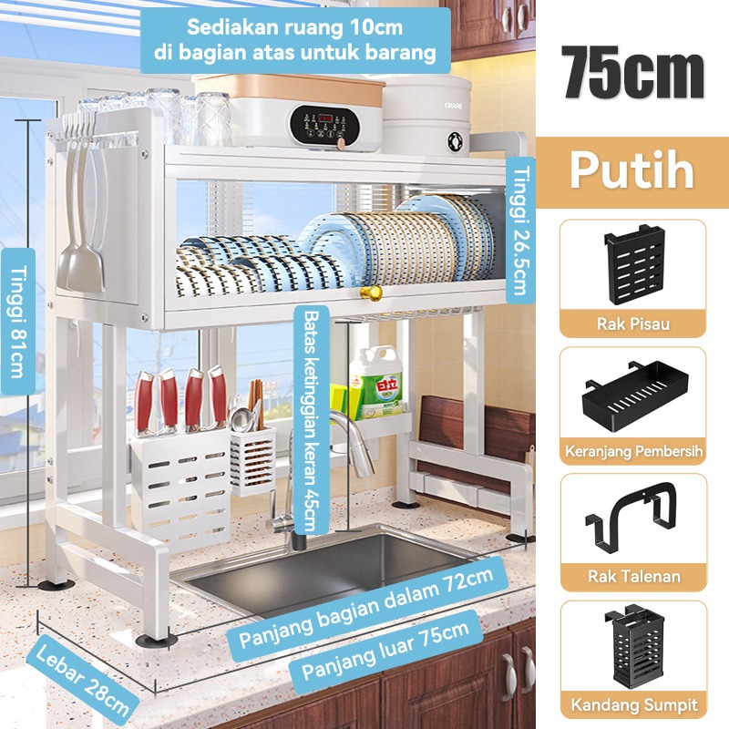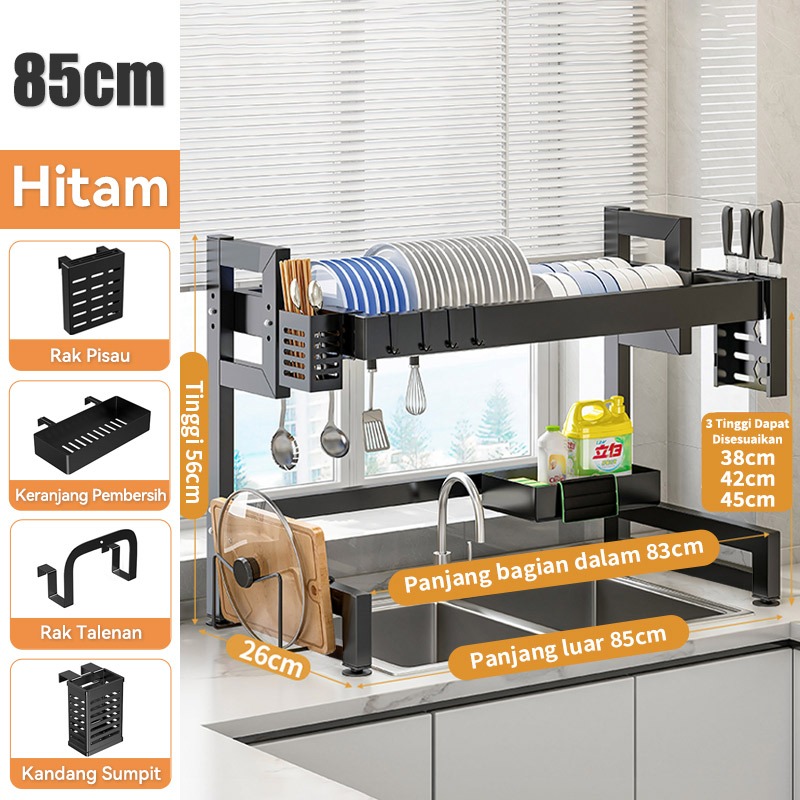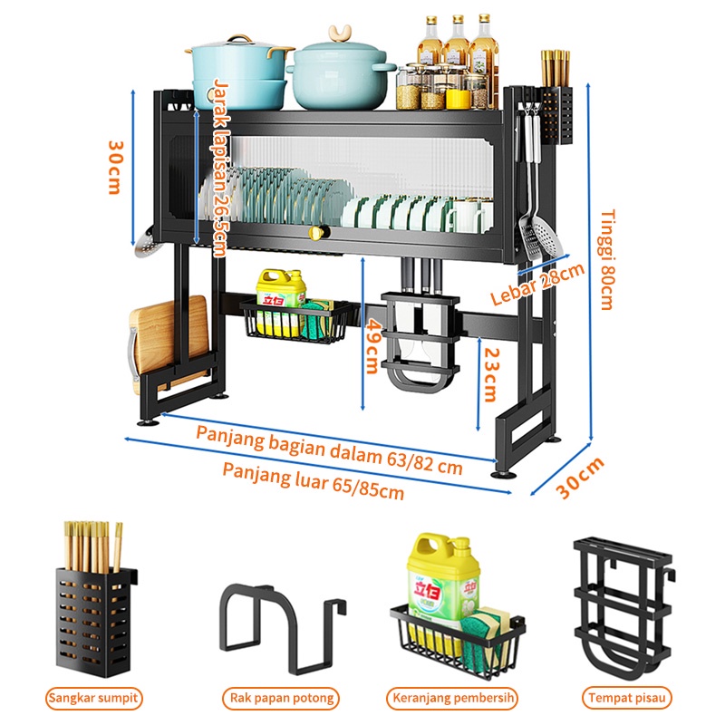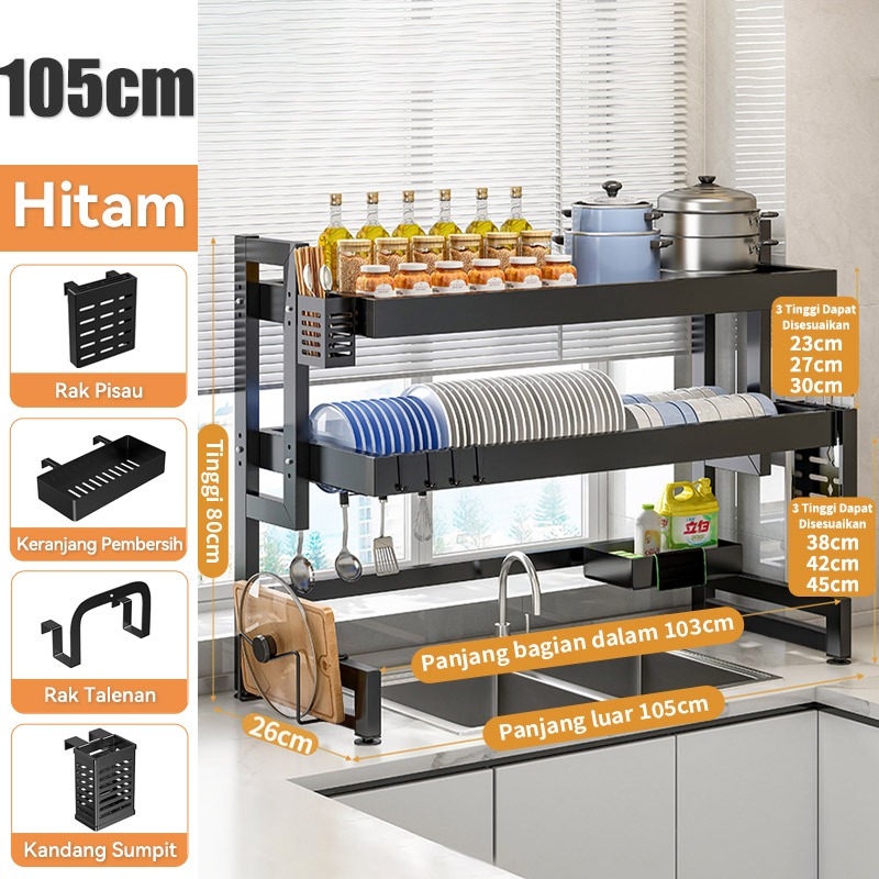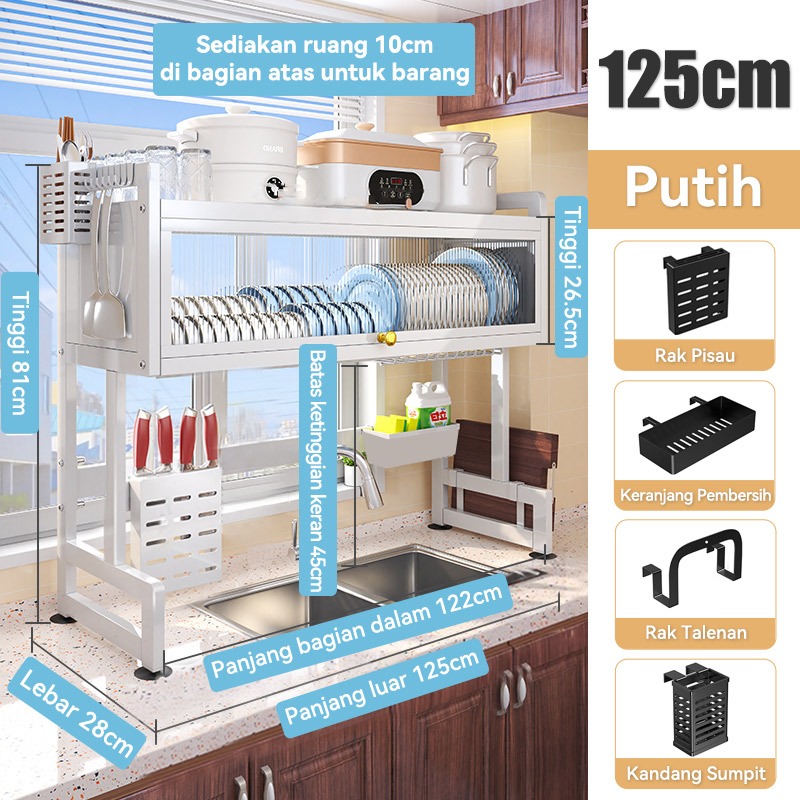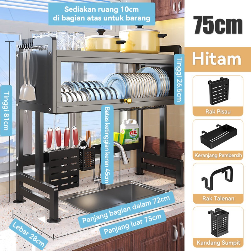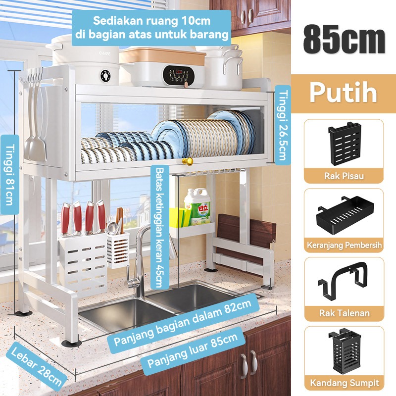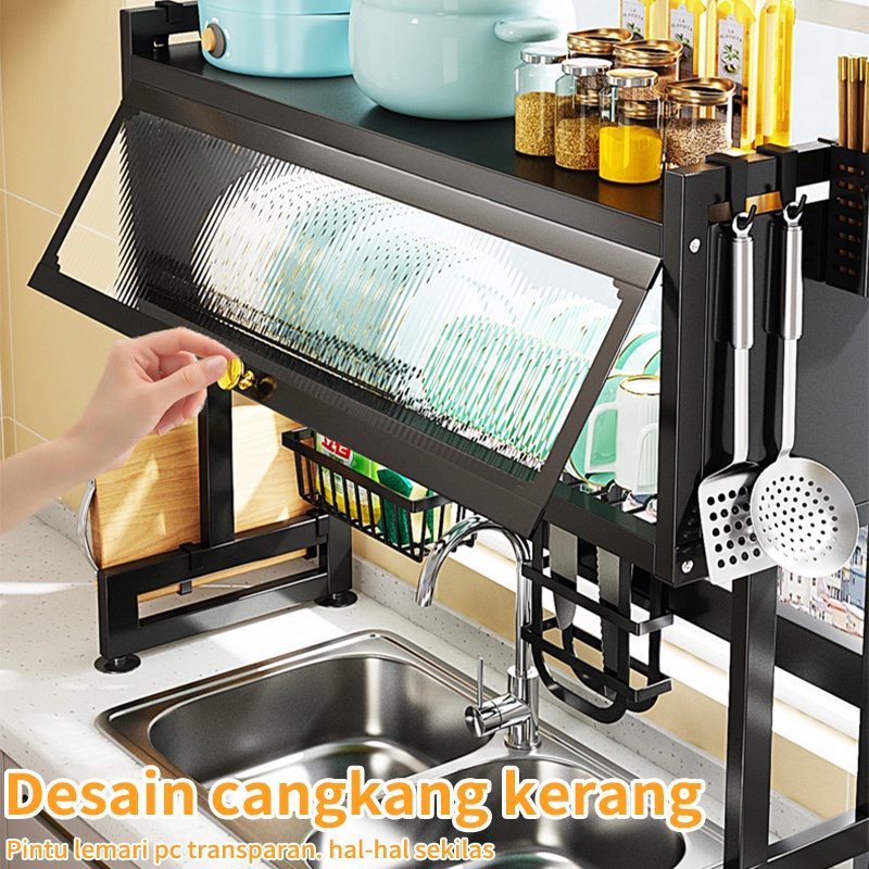 Rak Piring Wastafel Dapur Stainless Steel Multi-fungsi Dengan Penutup