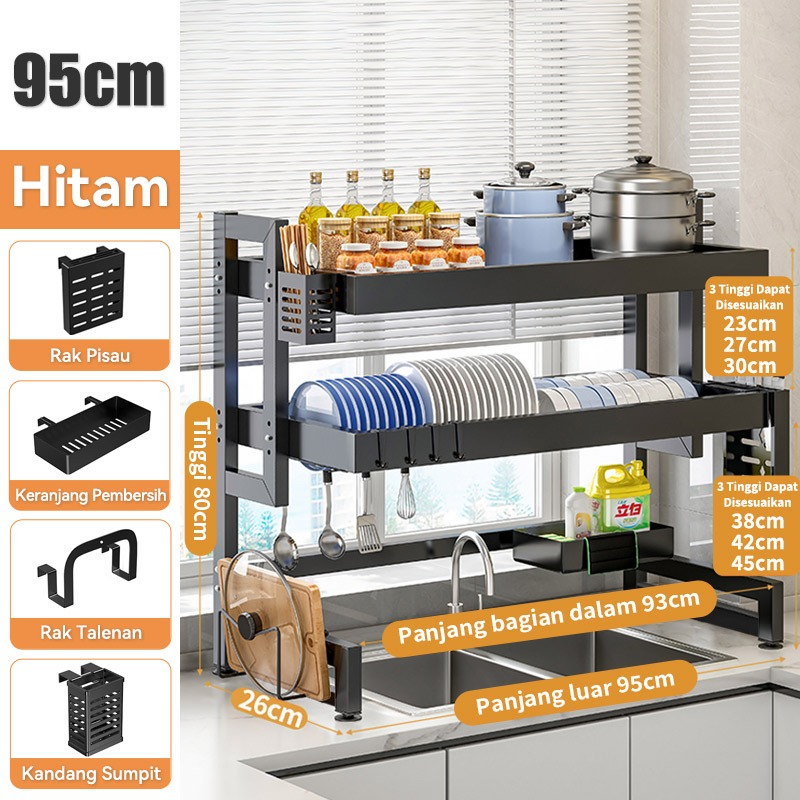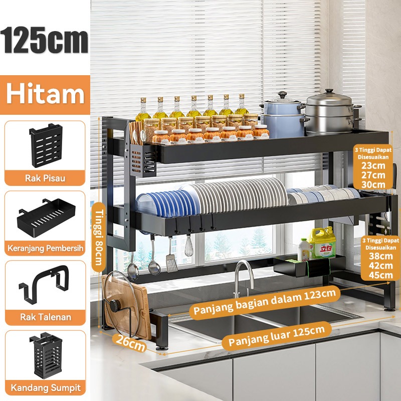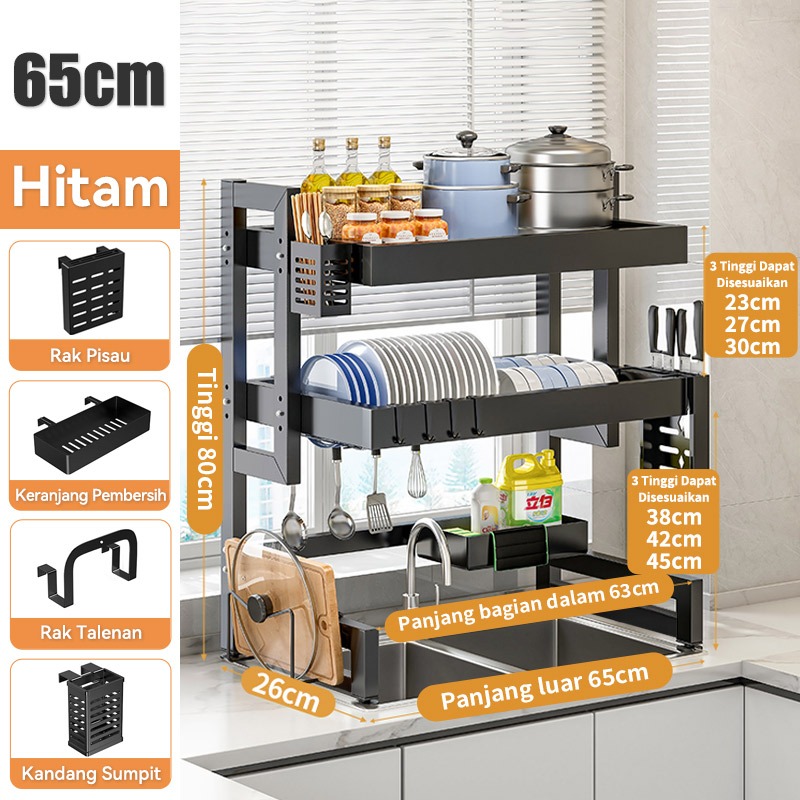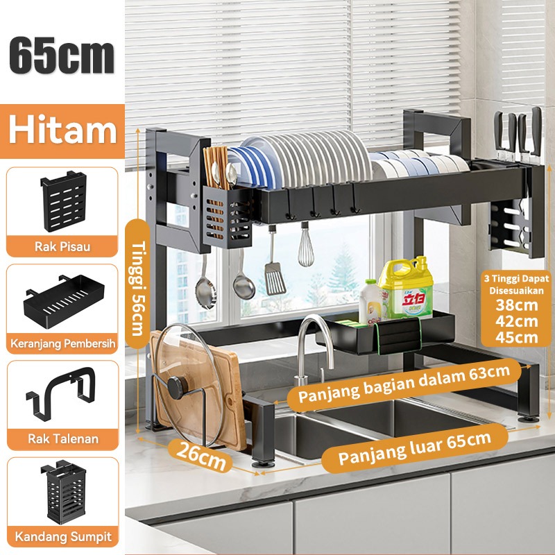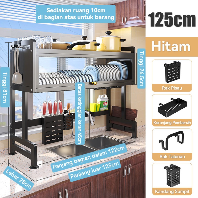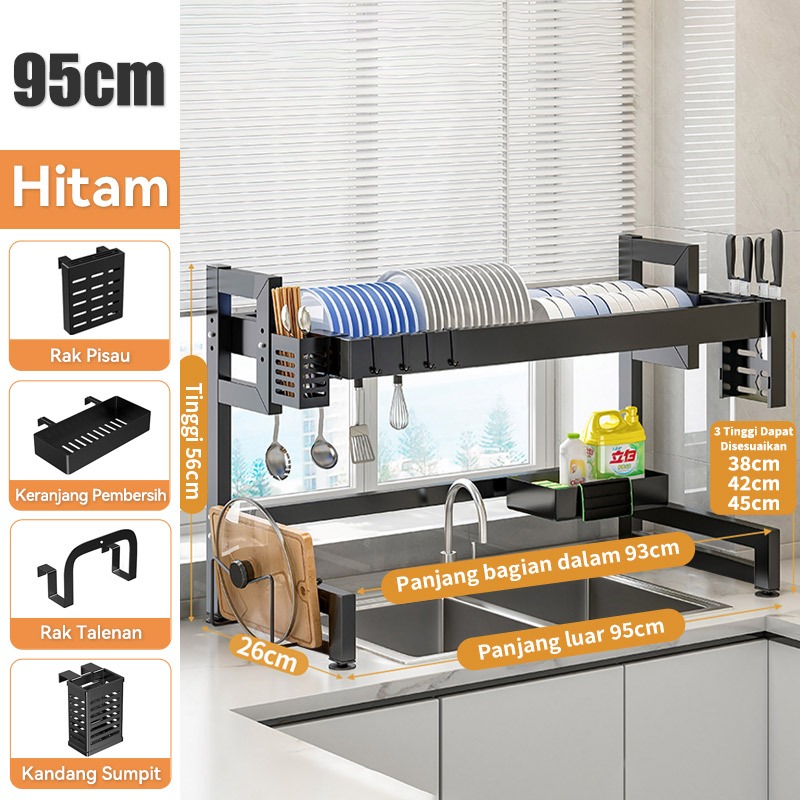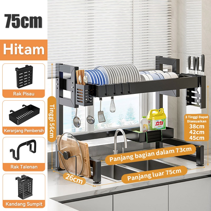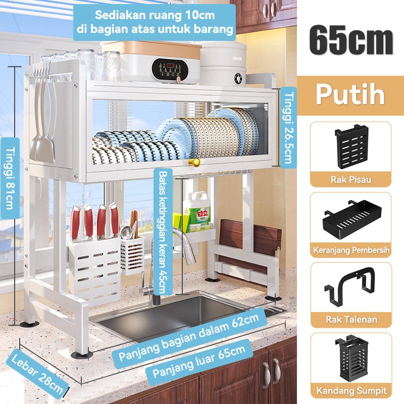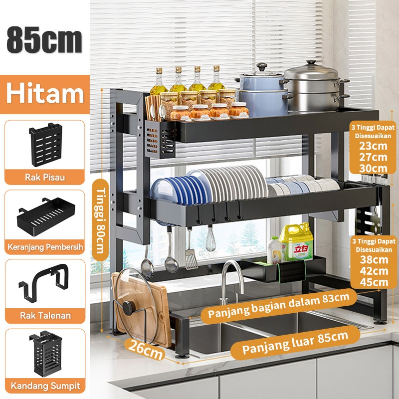 Rak Piring Wastafel Dapur Stainless Steel Multi-fungsi Dengan Penutup