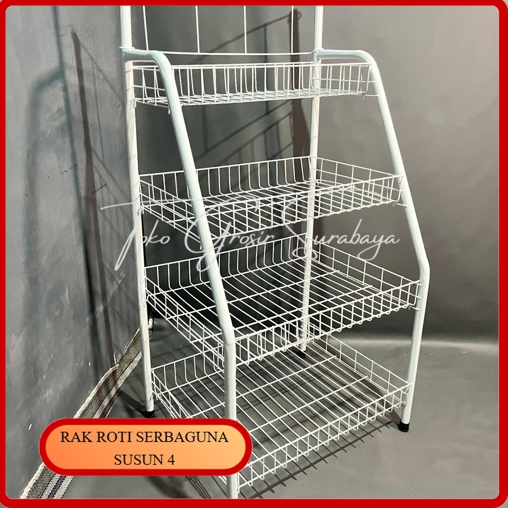 Rak Roti Serbaguna Susun 4 / Rak Besi Anti Karat / Rak Keranjang Toko / Rak Display / Rak Chiki
