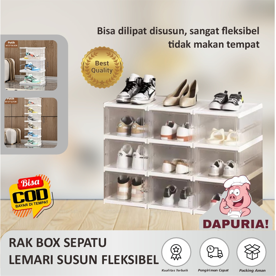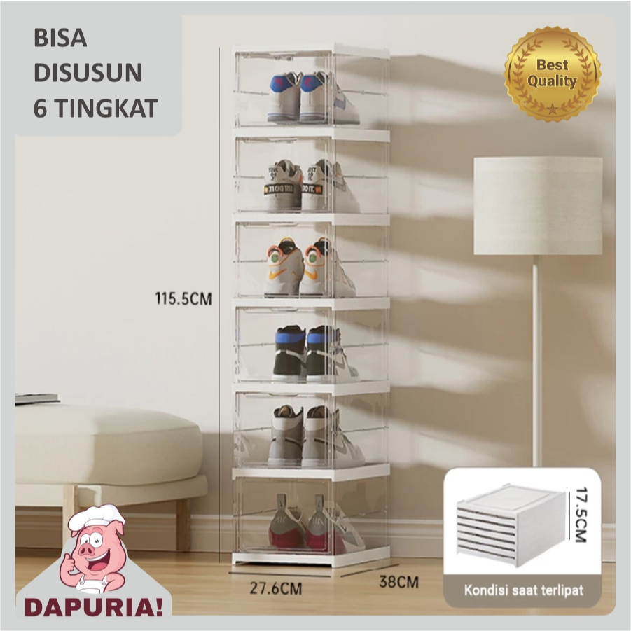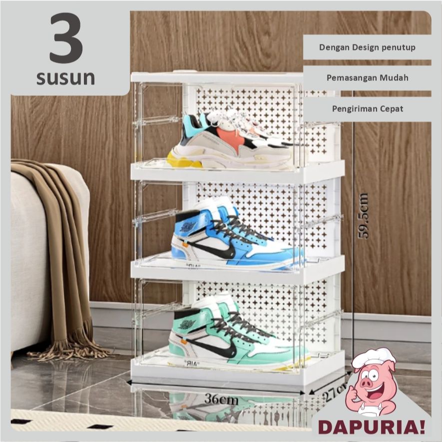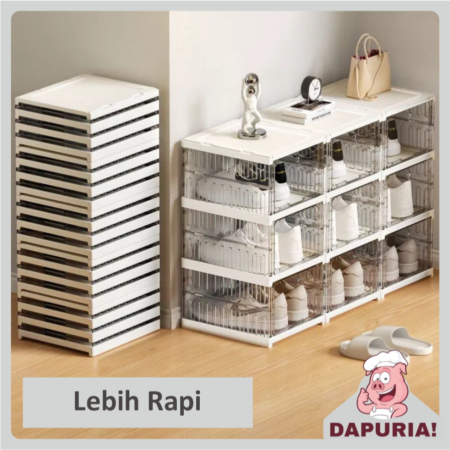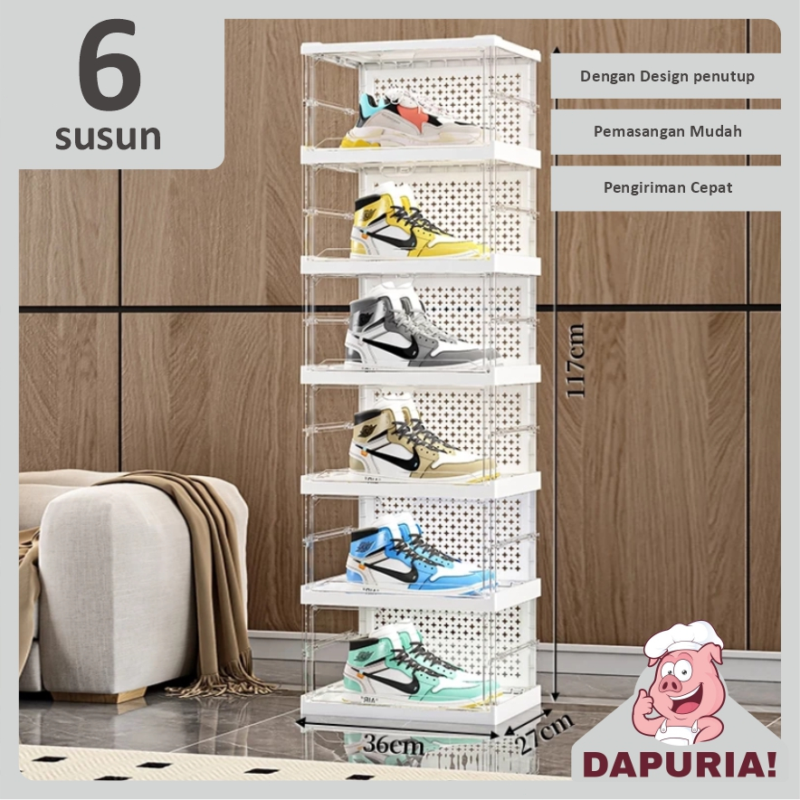 Rak Sepatu Anti Debu Rak Sepatu Susun Rak Sepatu Lipat Lemari Sepatu Multifungsi 3-6 Tingkat