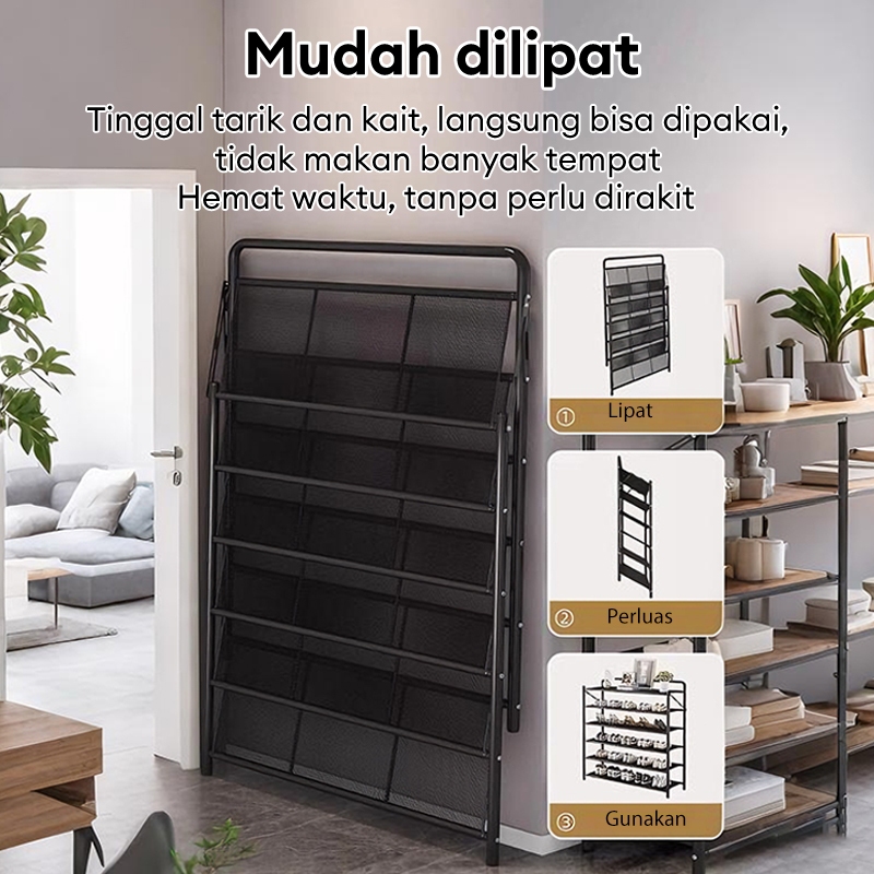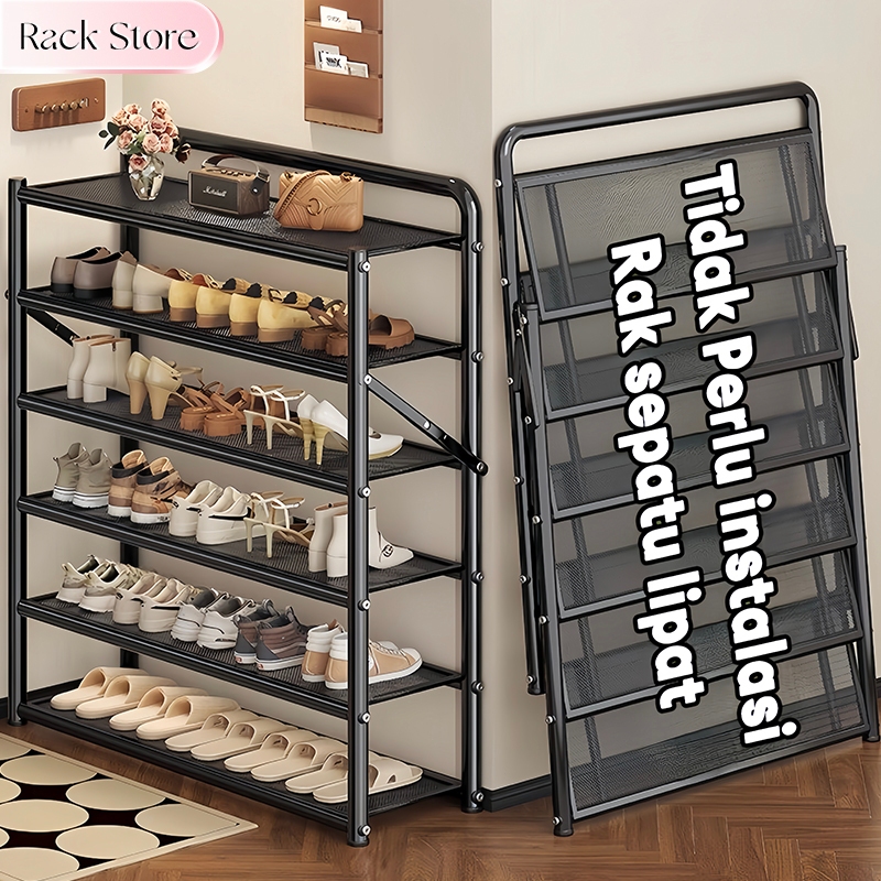 Rak Sepatu Lipat Tanpa Pasang 3-6 Susun | Mudah Dibawa Portable | Cocok Rumah Sewa & Kamar | Simpan Sepatu Sandal