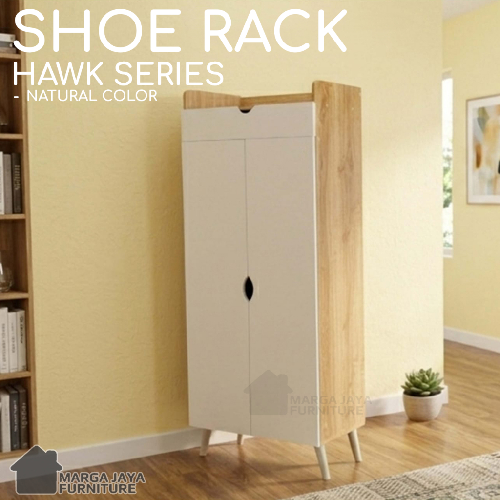 Rak Sepatu + Laci dengan Kaki Warna Oak Putih Natural Credenza
