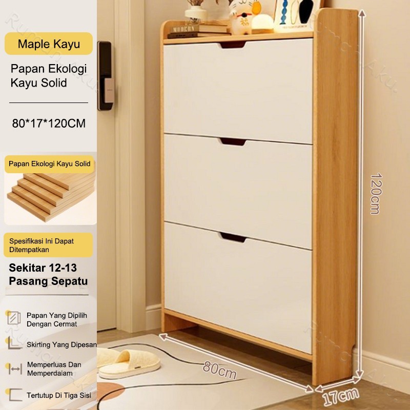 Rak Sepatu Susun Tertutup Lemari Sepatu Kayu Rak Sepatu dinding Minimalis Kabinet Sepatu Multifungsi Rak Sepatu Ultra Tipis<garansiLimaTahun>