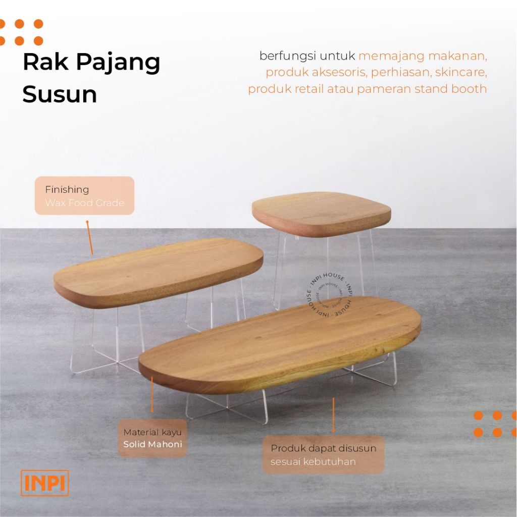 INPI HOUSE Display Stand, Riser - Rak Susun, Alas Display (3 Tingkat) - Kayu + Akrilik