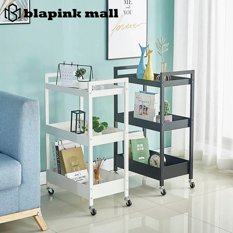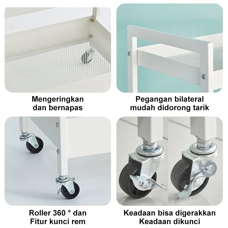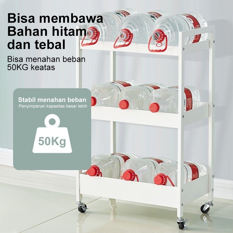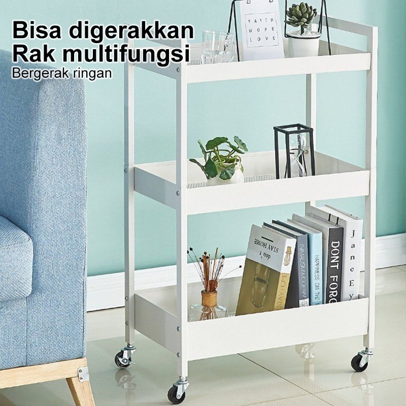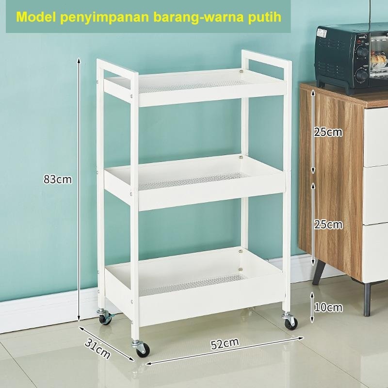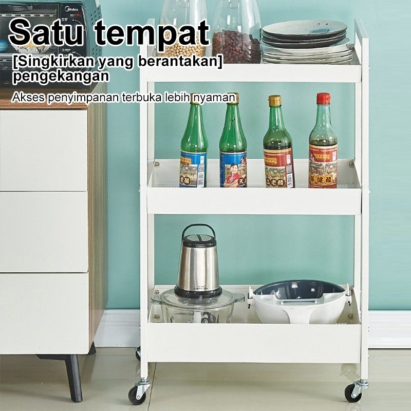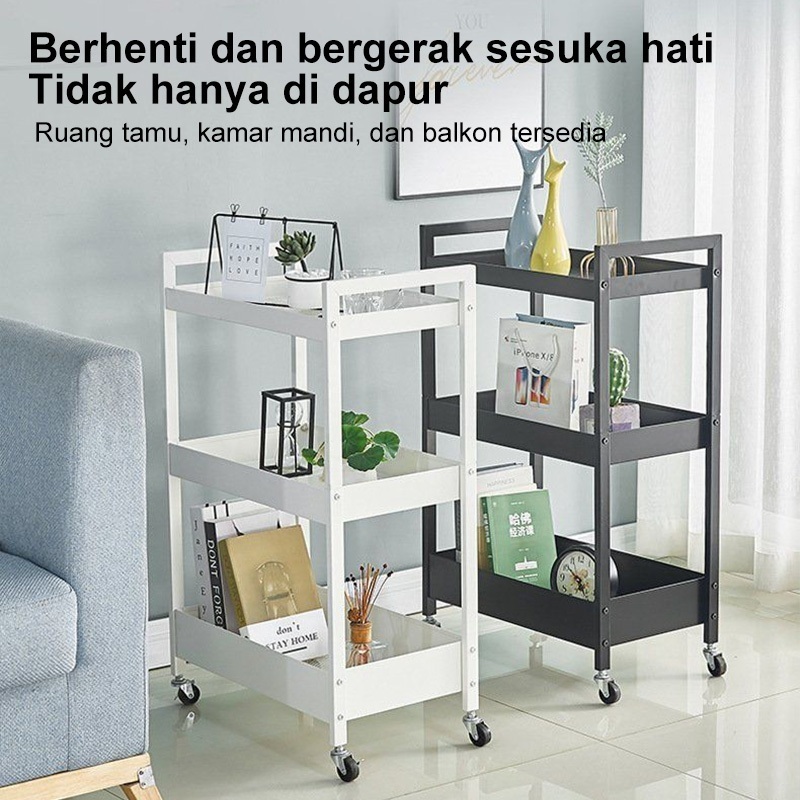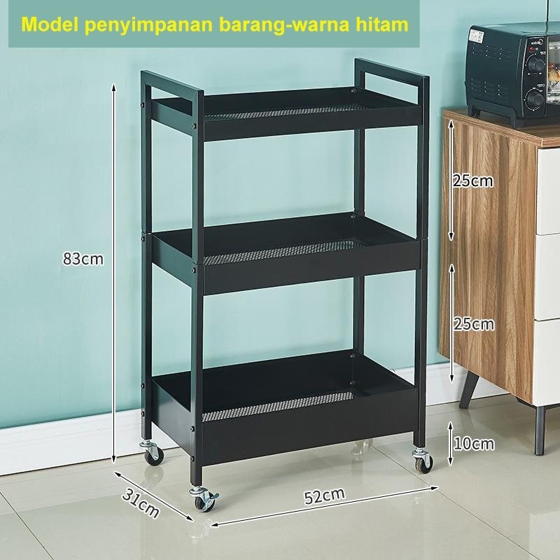 Rak Susun Roda Rak Troli Besi Rak Dapur Serbaguna Rak Penyimpanan 3 Tingkat Rak Kamar Mandi Rak Salon