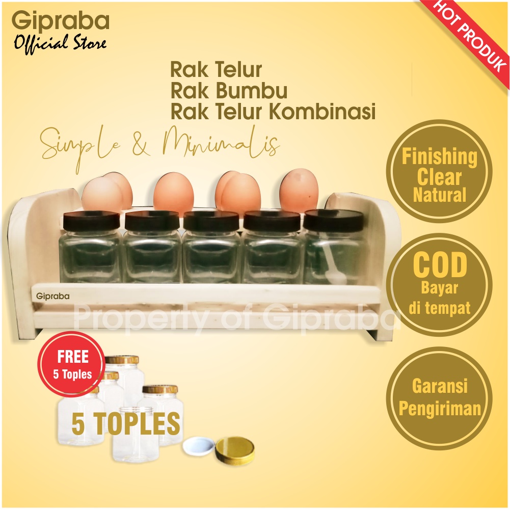 Rak Telur Kombinasi Rak Bumbu Tempat Telur Bumbu Dapur 2in1 Keranjang Telur Kayu Etalase Telur Bumbu Dapur